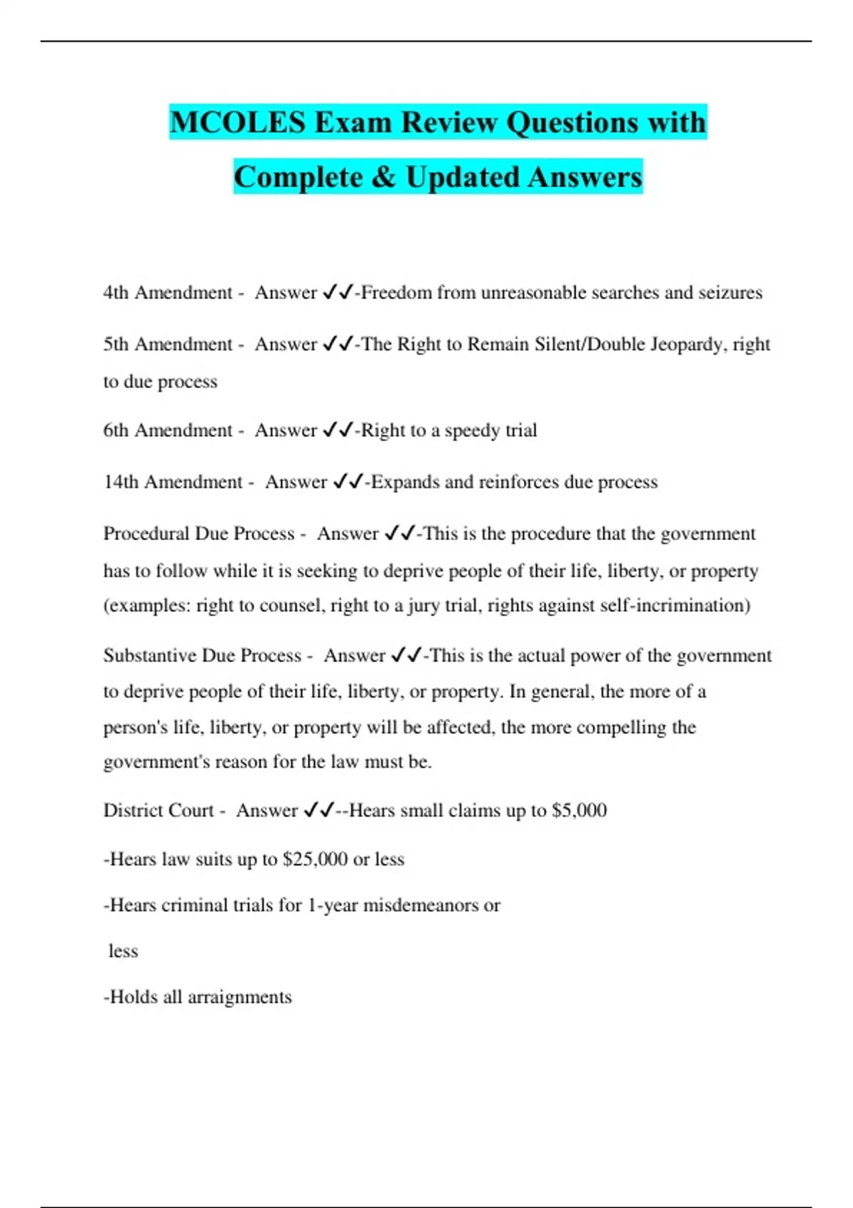 MCOLES Exam Review Questions with Complete & Updated Answers