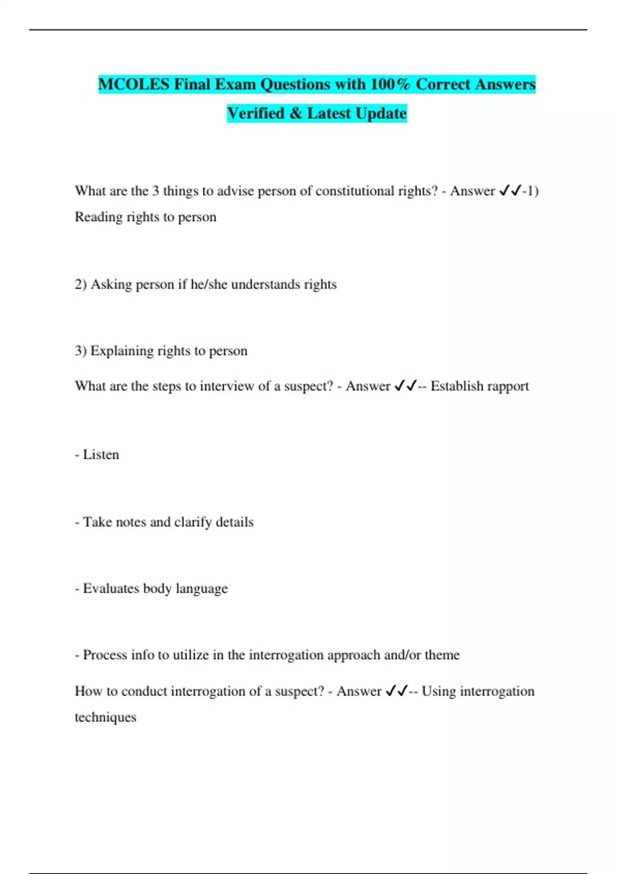 MCOLES Final Exam Questions with 100% Correct Answers Verified & Latest Update