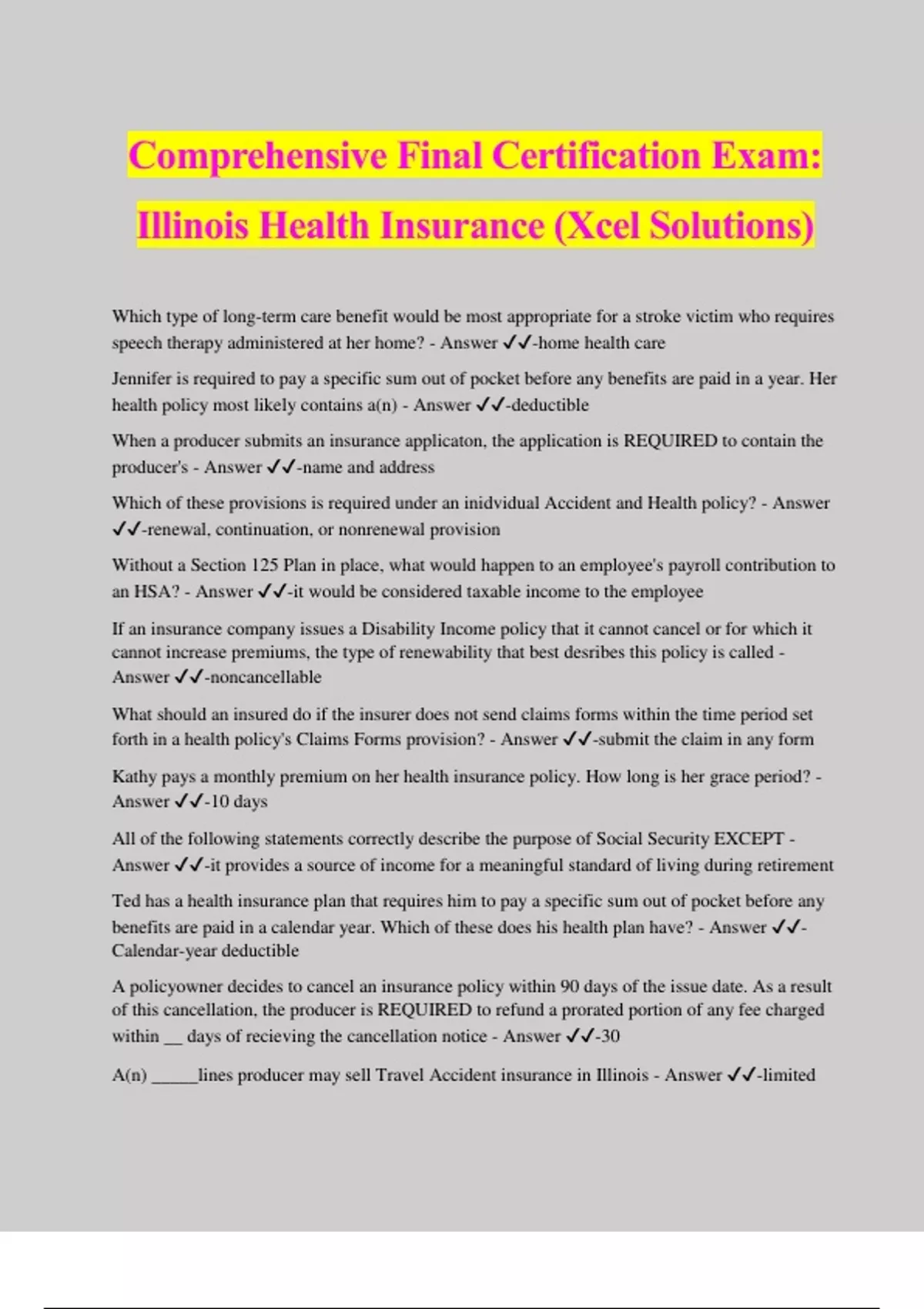 Comprehensive Final Certification Exam: Illinois Health Insurance (Xcel Solutions)