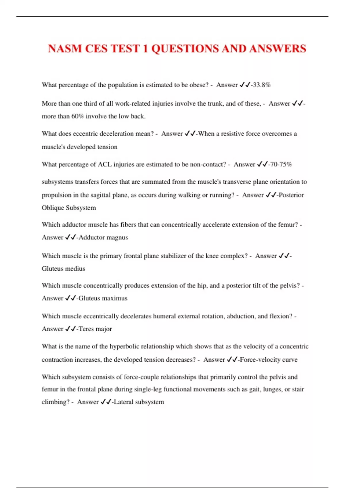 NASM CES TEST 1 QUESTIONS AND ANSWERS