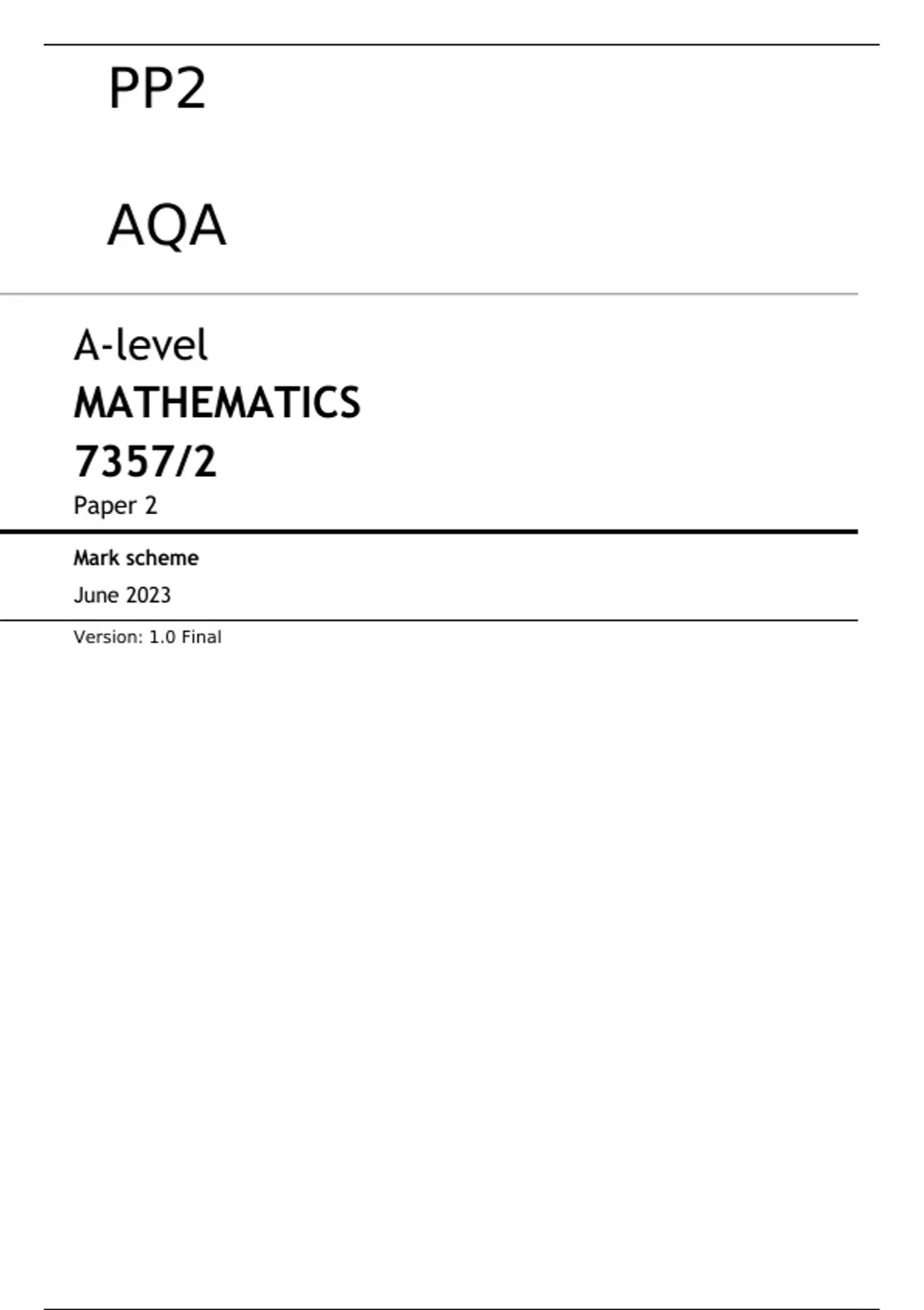 AQA A-level MATHEMATICS 7357/2 Paper 2 JUNE 2023 FINAL MARK SCHEME