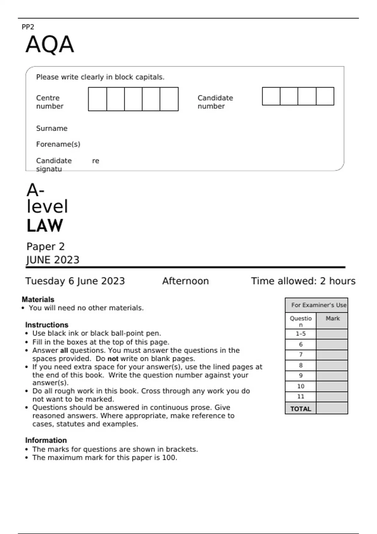 AQA A-level LAW Paper 2 JUNE 2023 FINAL QUESTION PAPER