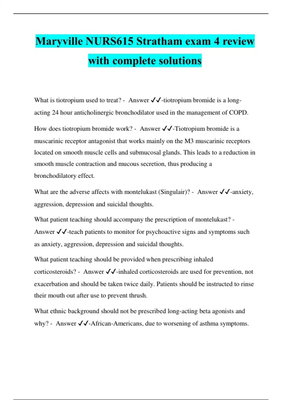 Maryville NURS615 Stratham exam 4 review with complete solutions