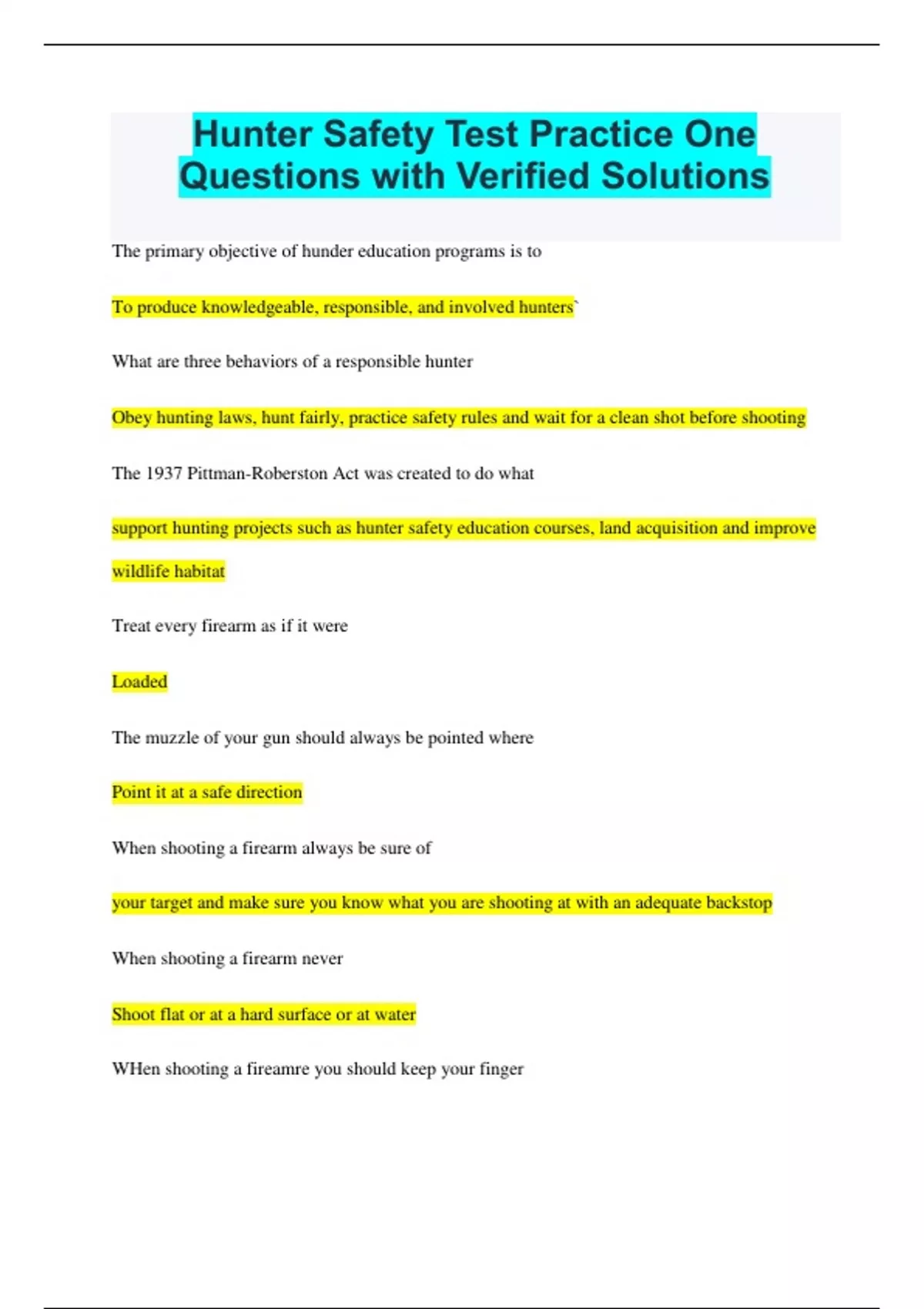 Hunter Safety Test Practice One Questions with Verified Solutions