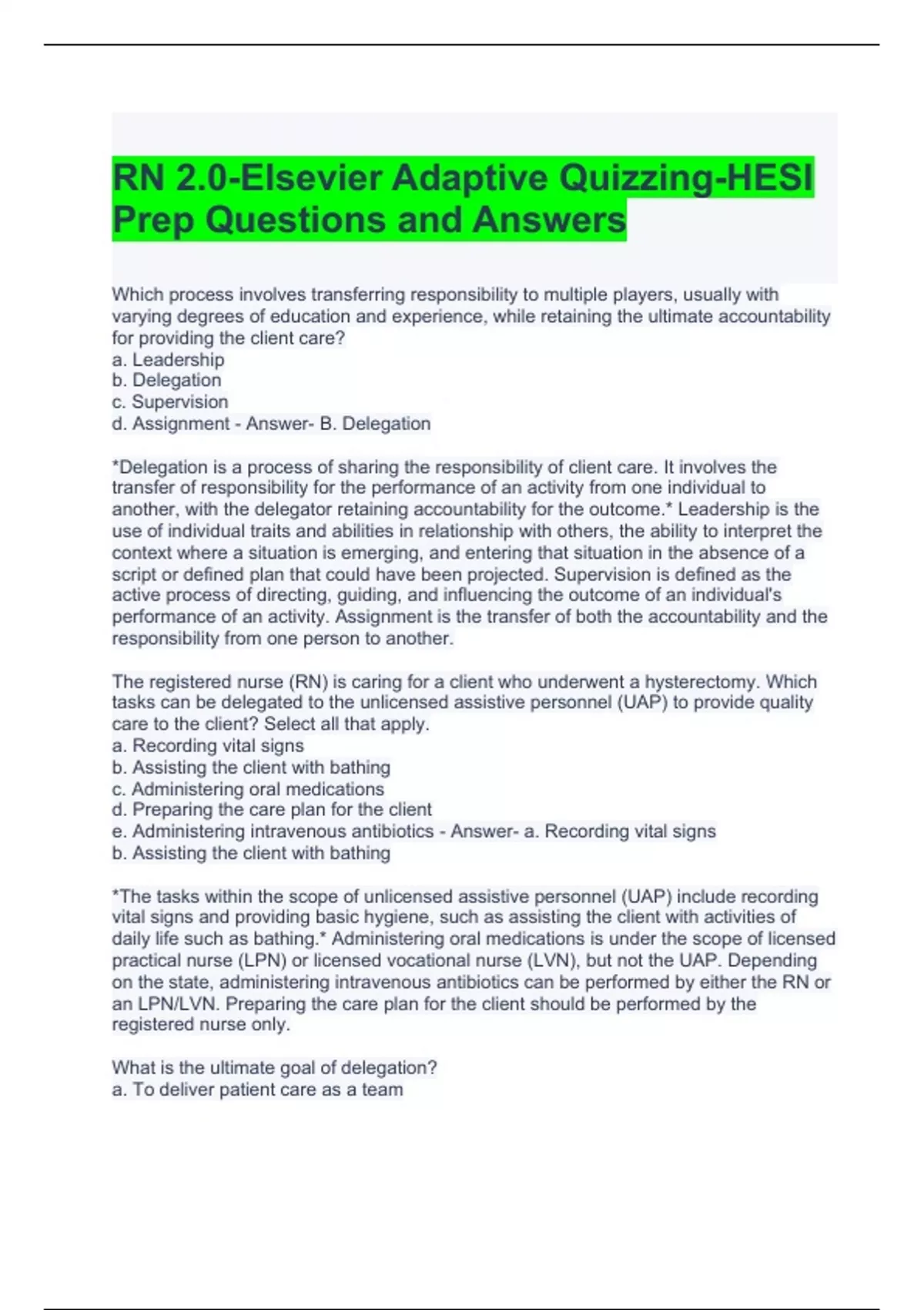 RN 2.0-Elsevier Adaptive Quizzing-HESI Prep Questions and Answers