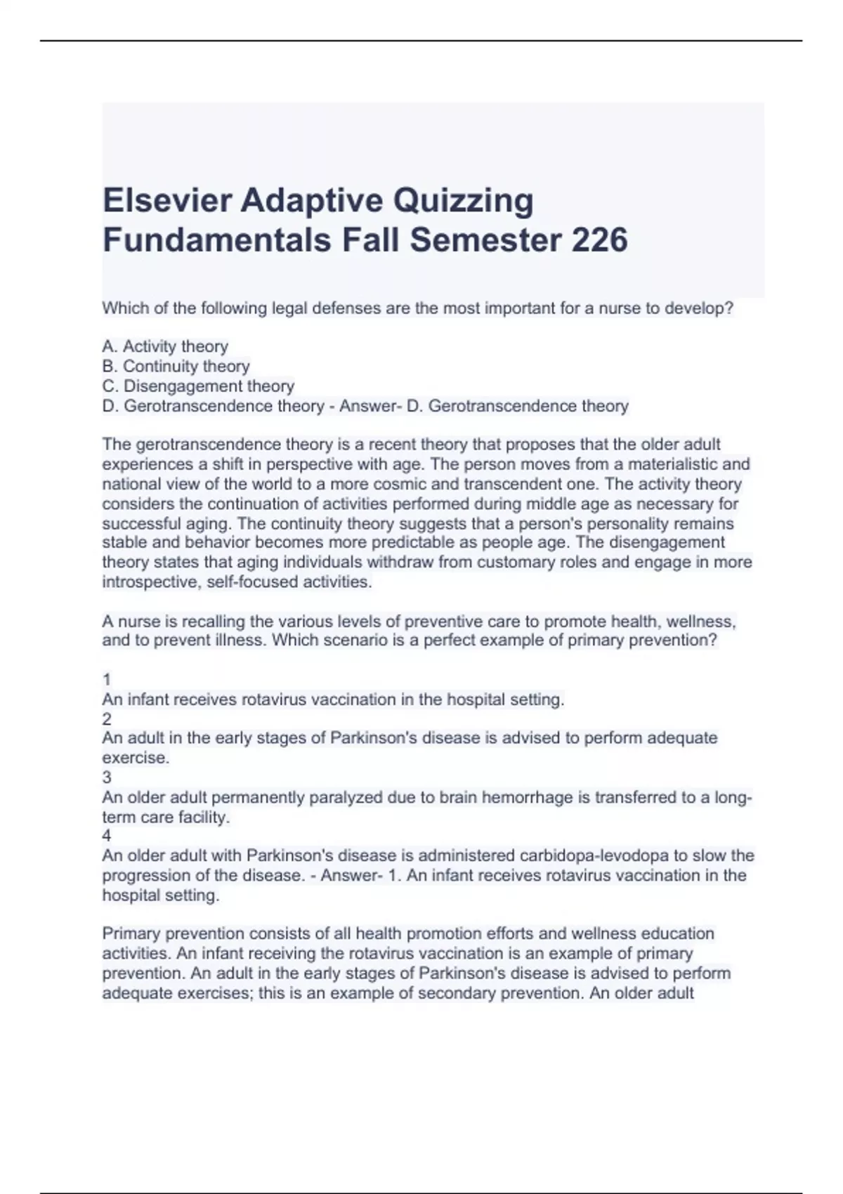 Elsevier Adaptive Quizzing Fundamentals Fall Semester 226 Exam