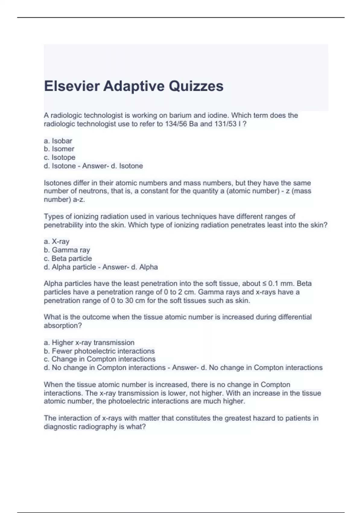 Elsevier Adaptive Quizzes