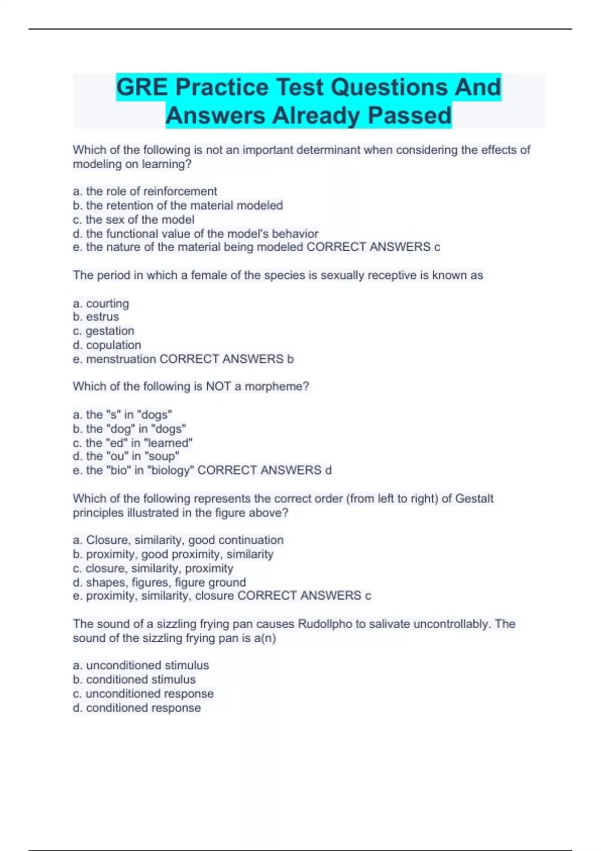 GRE Practice Test Questions And Answers Already Passed
