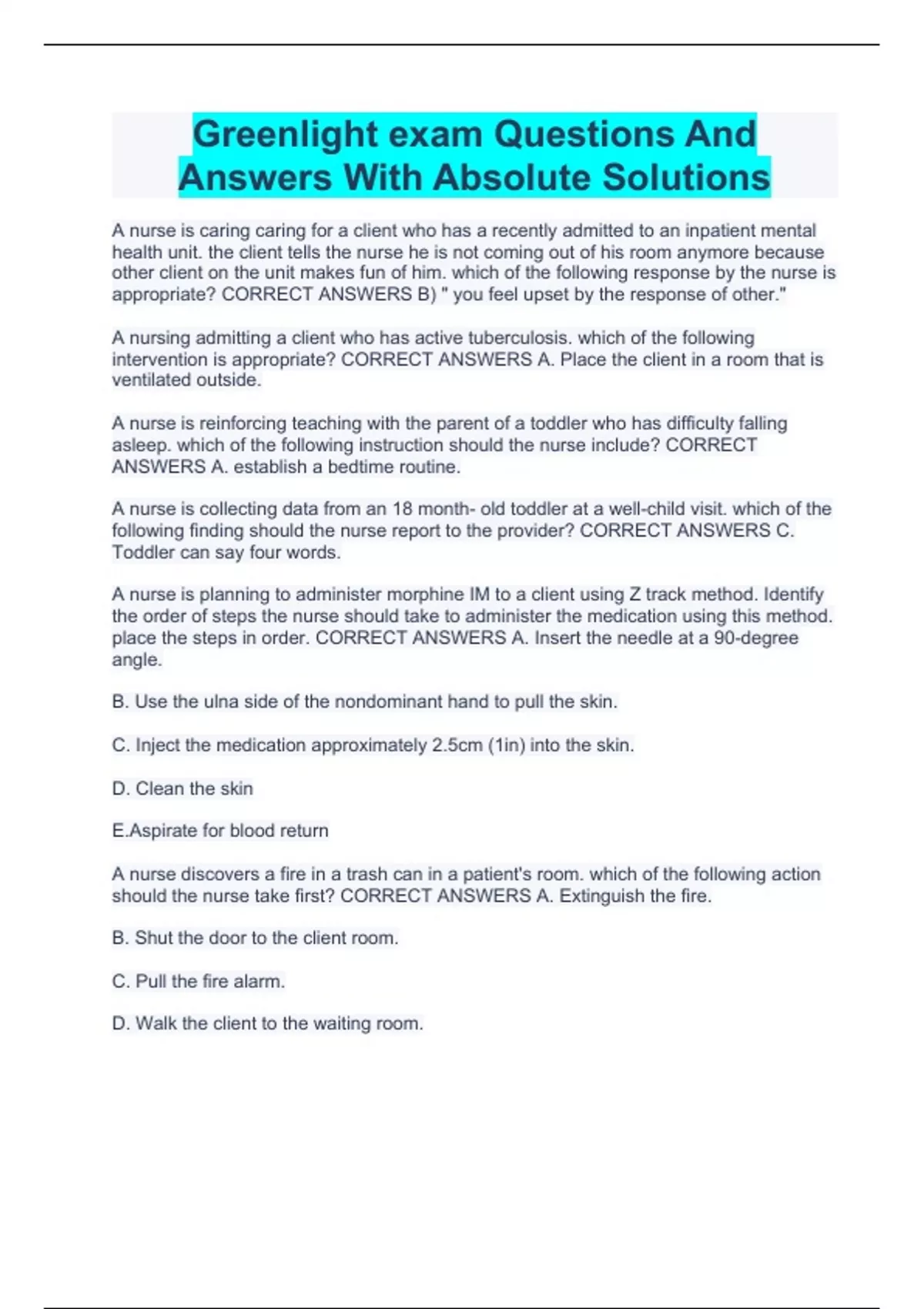 Greenlight exam Questions And Answers With Absolute Solutions