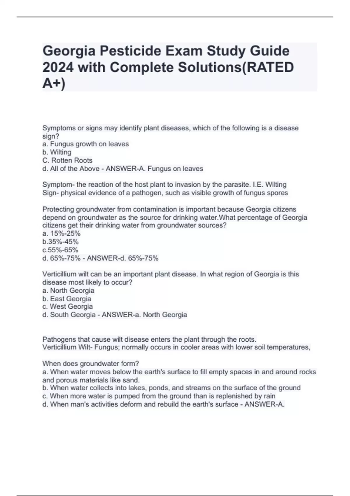 Georgia Pesticide Exam Study Guide 2024 with Complete Solutions(RATED A+)