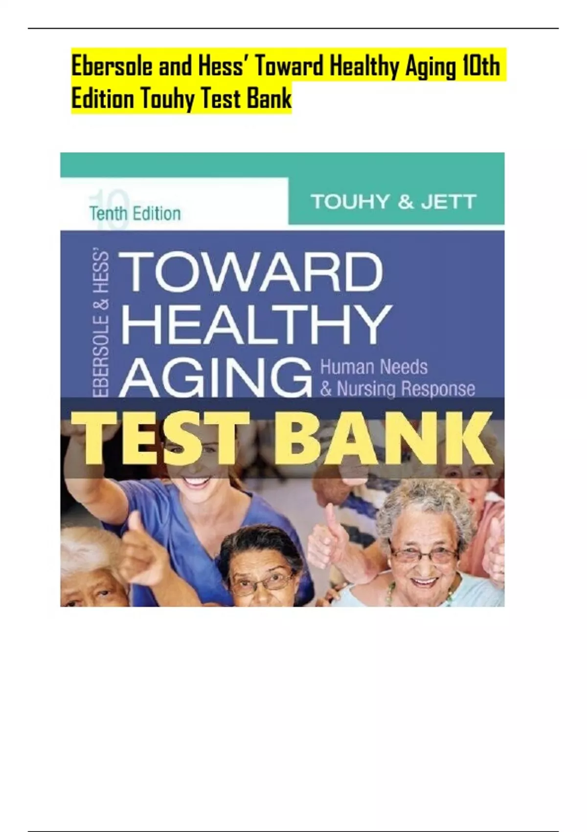 Complete Ebersole and Hess’ Toward Healthy Aging 10th Edition Touhy Test Bank all chapters 1-36