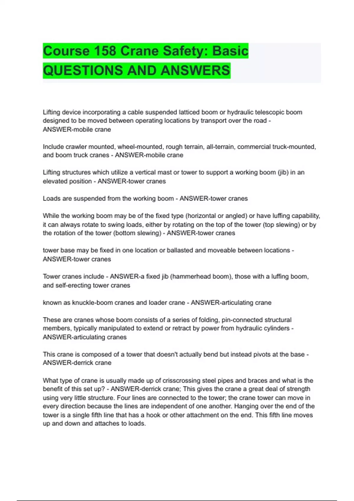 Course 158 Crane Safety: Basic QUESTIONS AND ANSWERS