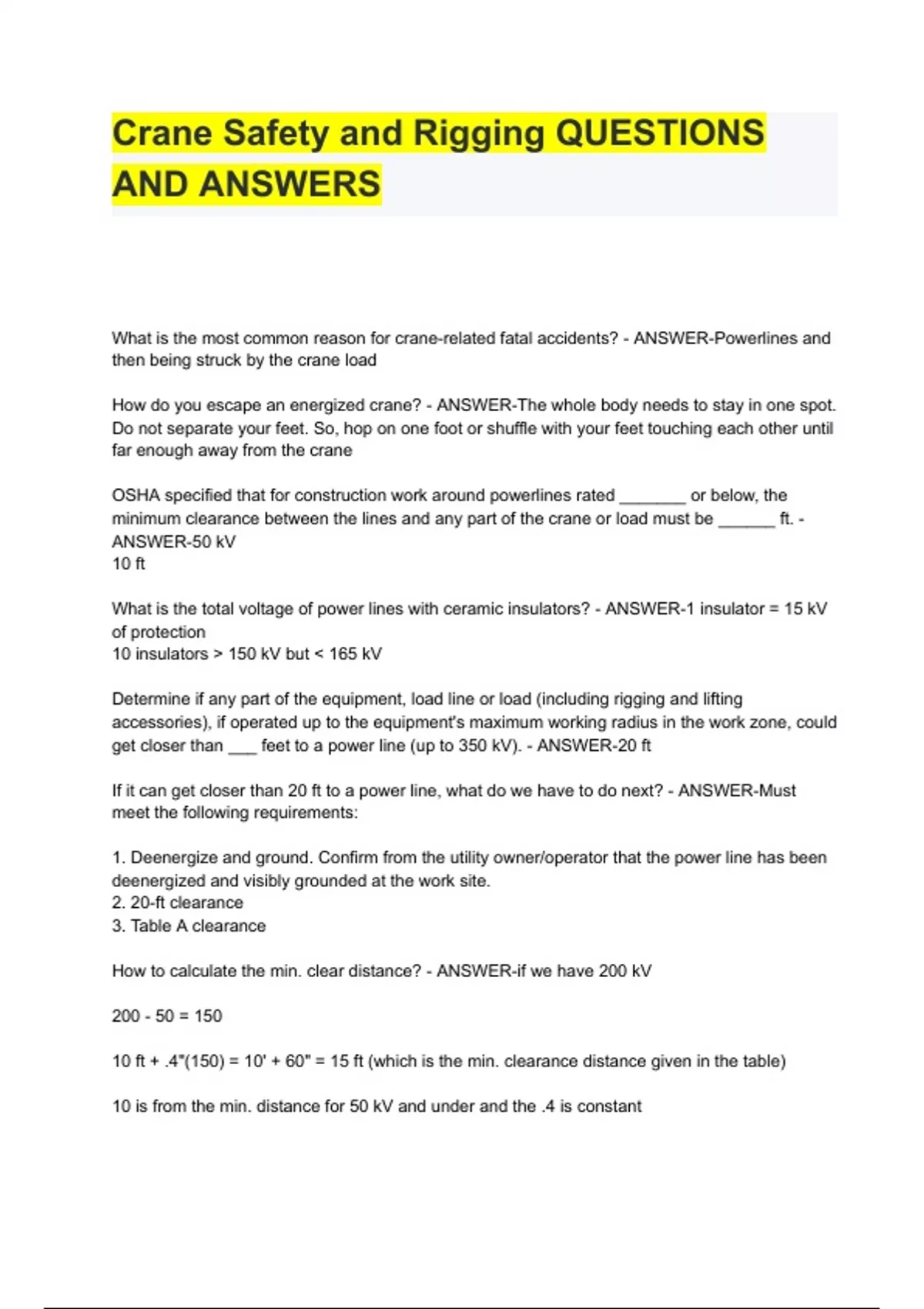 Crane Safety and Rigging QUESTIONS AND ANSWERS