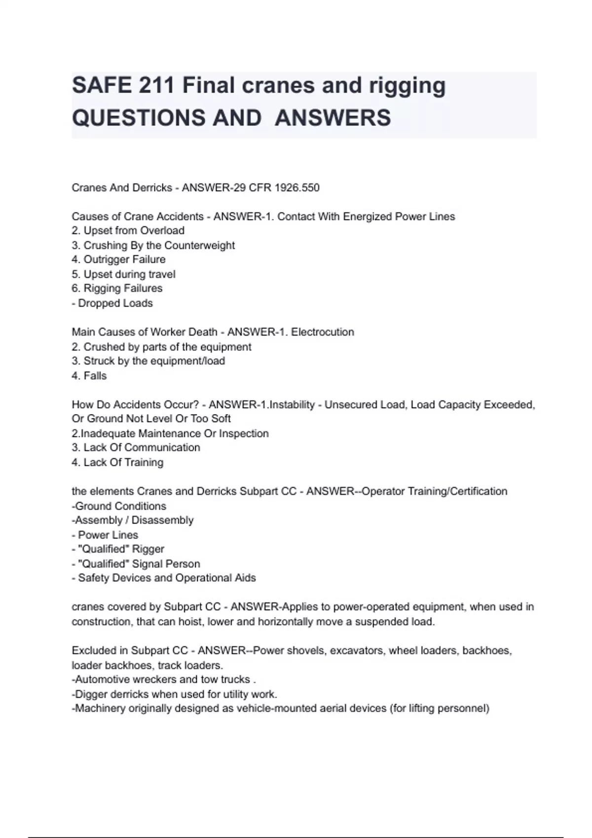 - SAFE 211 Finl cranes and rigging QUTIONS AND A
