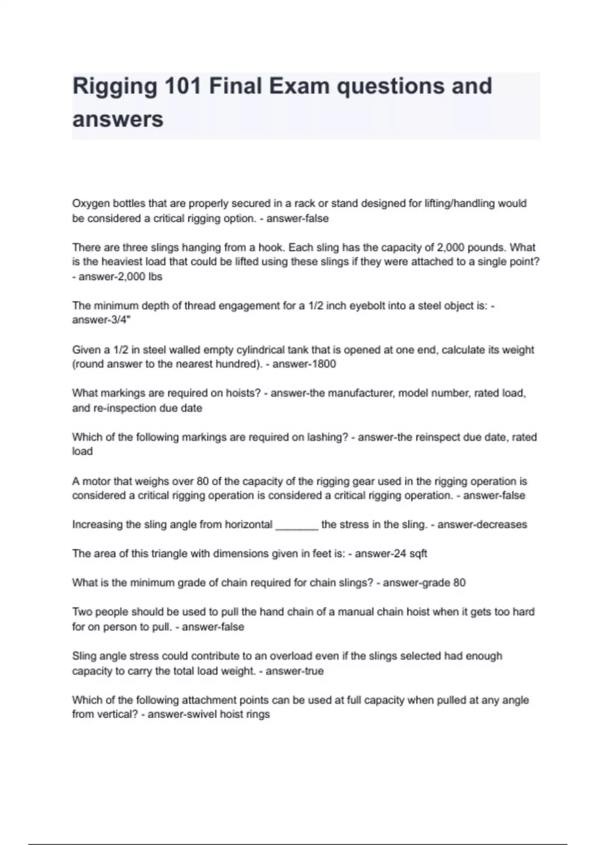rigging 101 final exam questions and answers