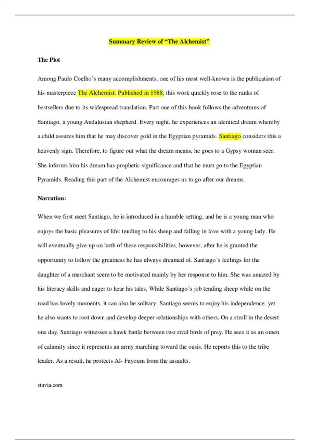 Summary Review of The Alchemist