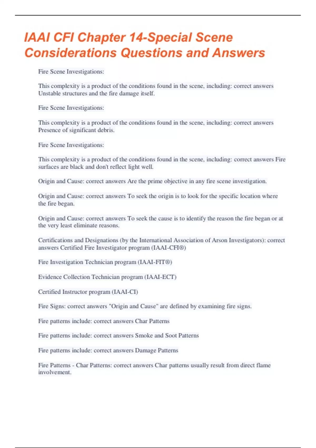 IAAI CFI Chapter 14-Special Scene Considerations Questions and Answers