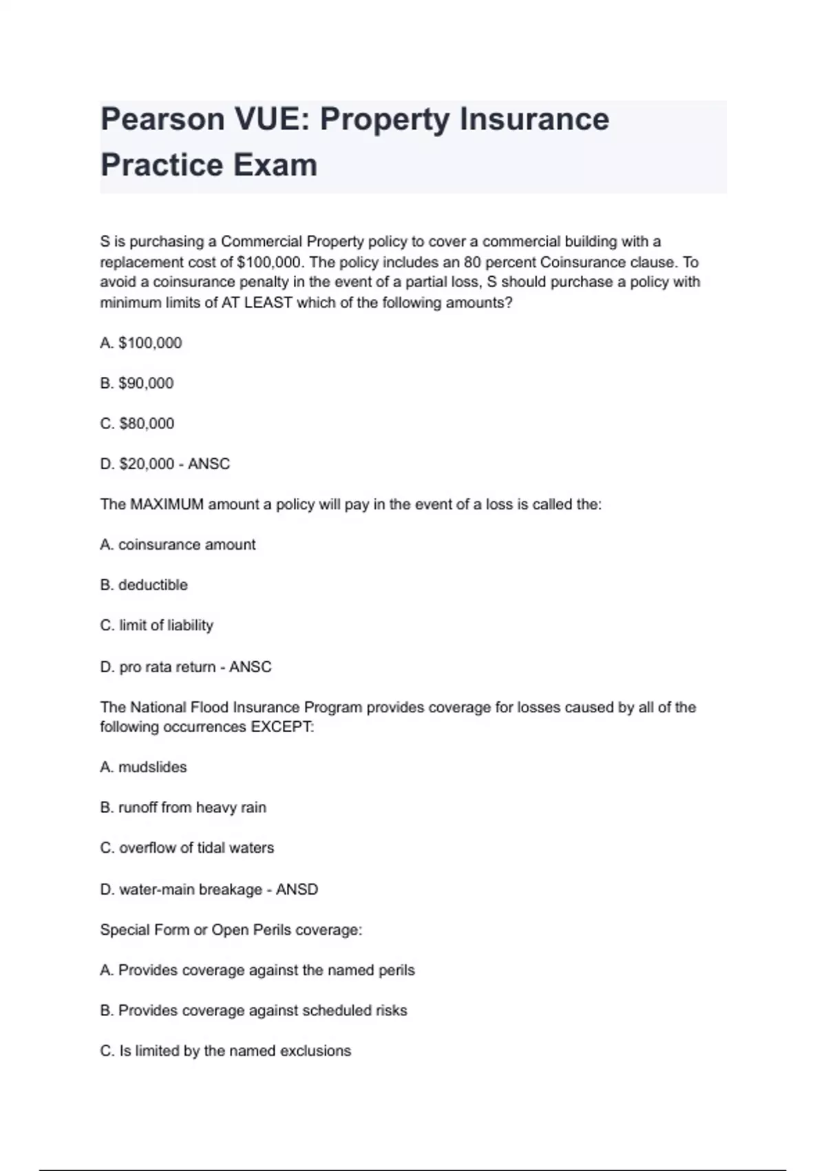 Pearson VUE: Property Insurance Practice Exam 2024/2025 already graded A+