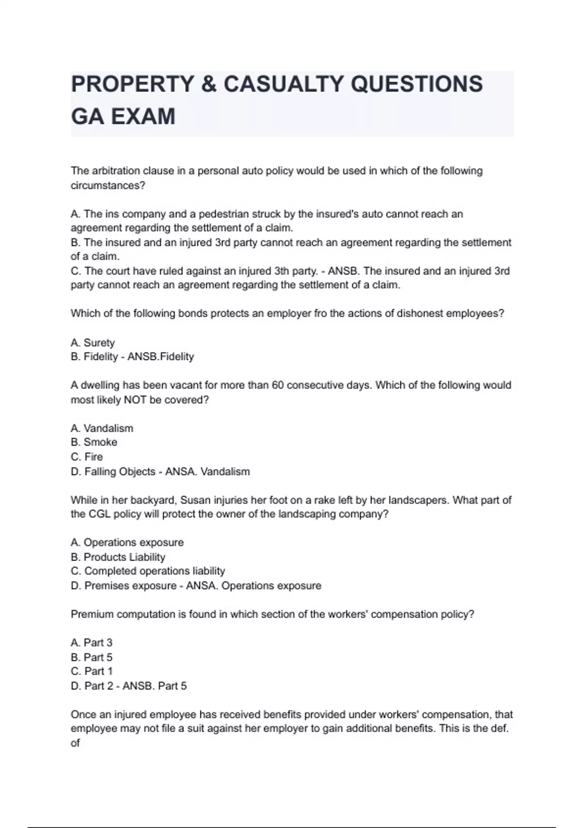 PROPERTY & CASUALTY QUESTIONS GA EXAM 2024/2025 already graded A+