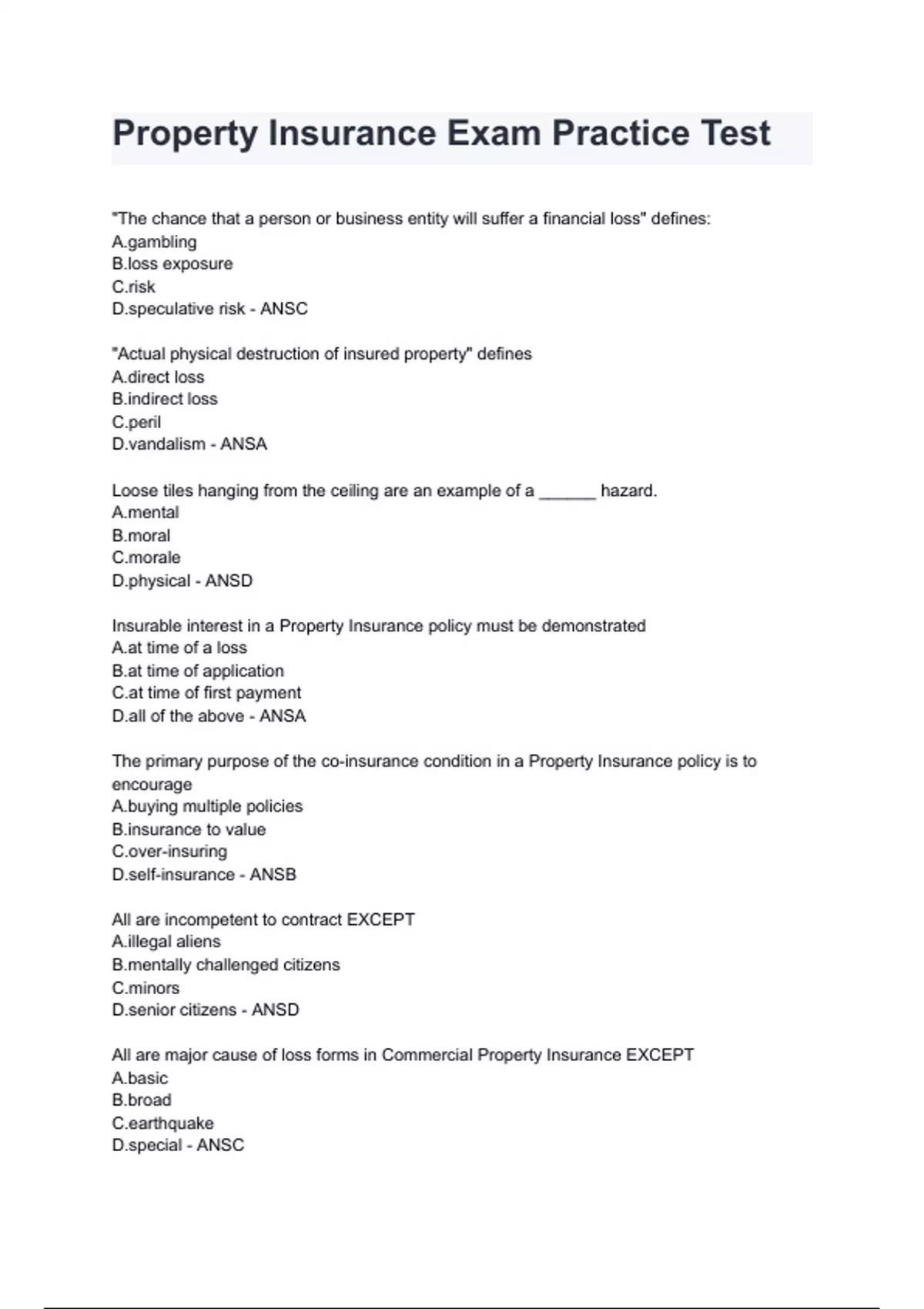 Property Insurance Exam Practice Test 2024/2025 already graded A+