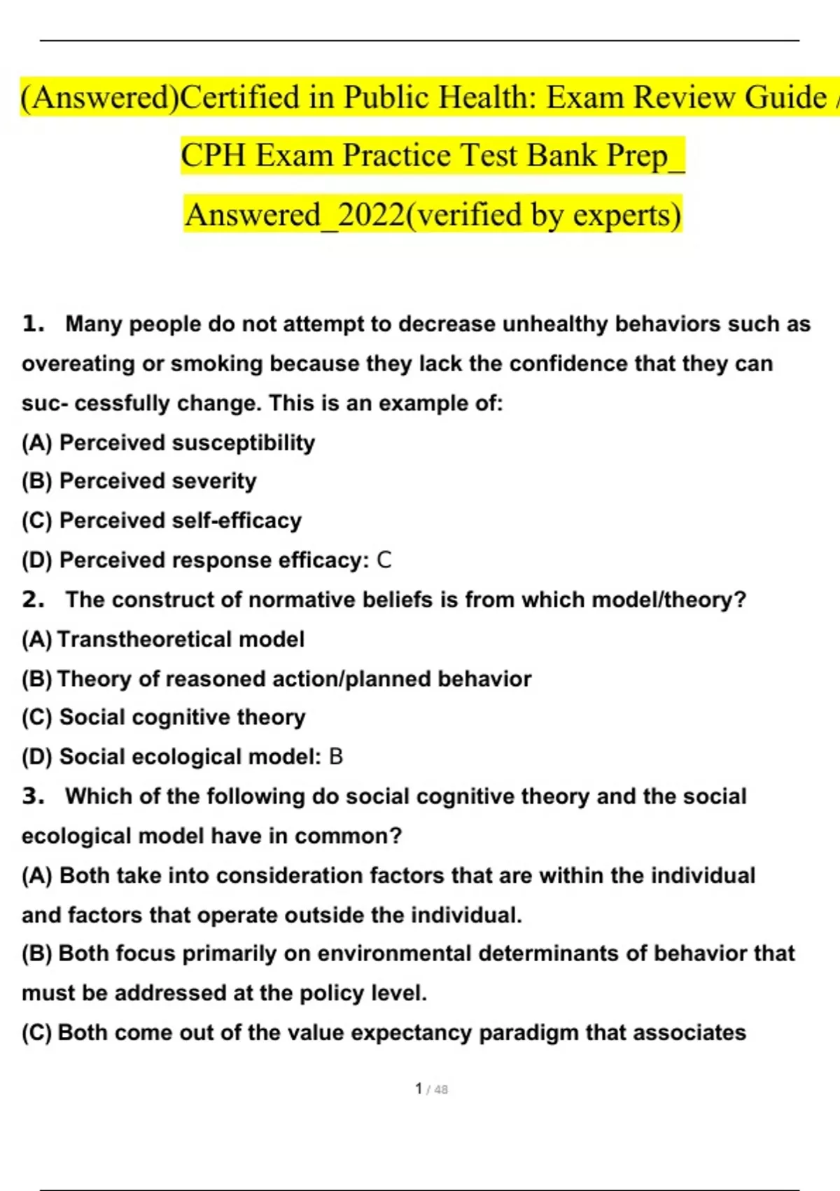 (Answered)Certified in Public Health: Exam Review Guide / CPH Exam Practice Test Bank Prep_ Answered_2022.