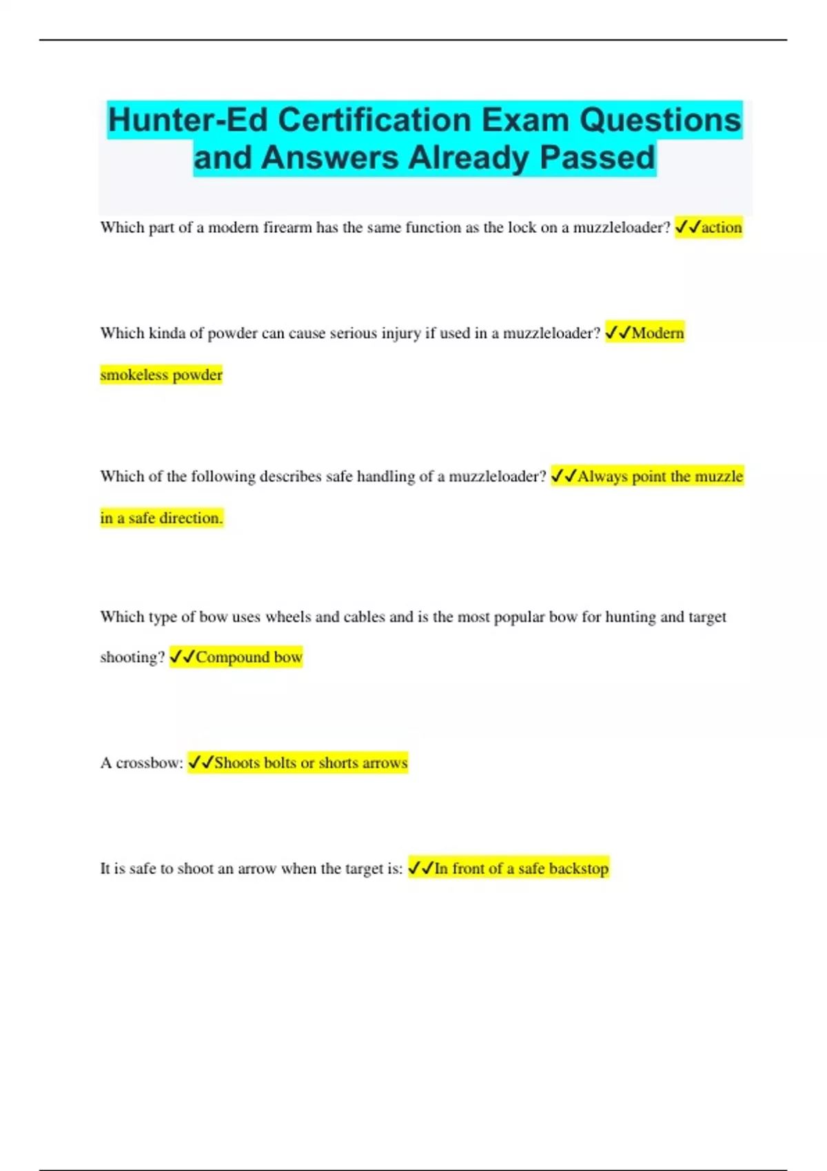 Hunter-Ed Certification Exam Questions and Answers Already Passed