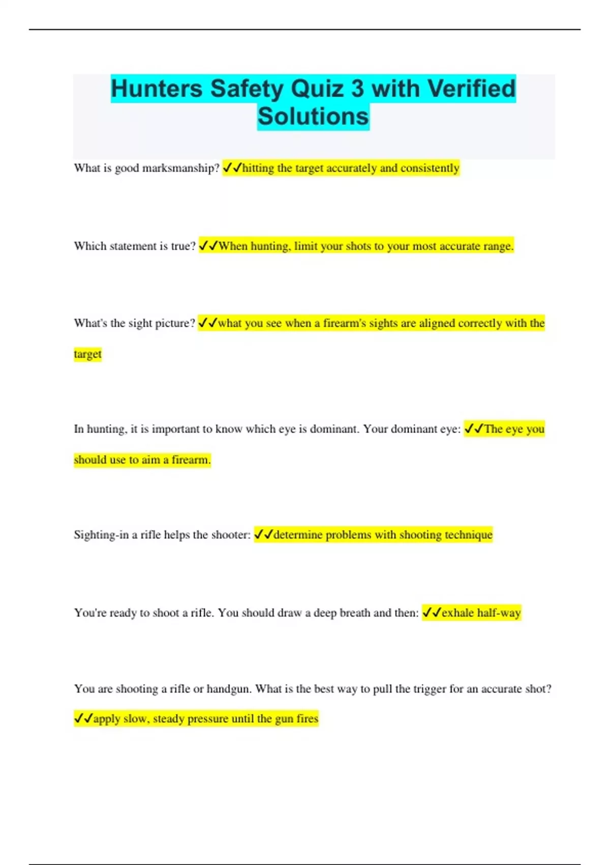 hunters safety quiz 3 with verified solutions