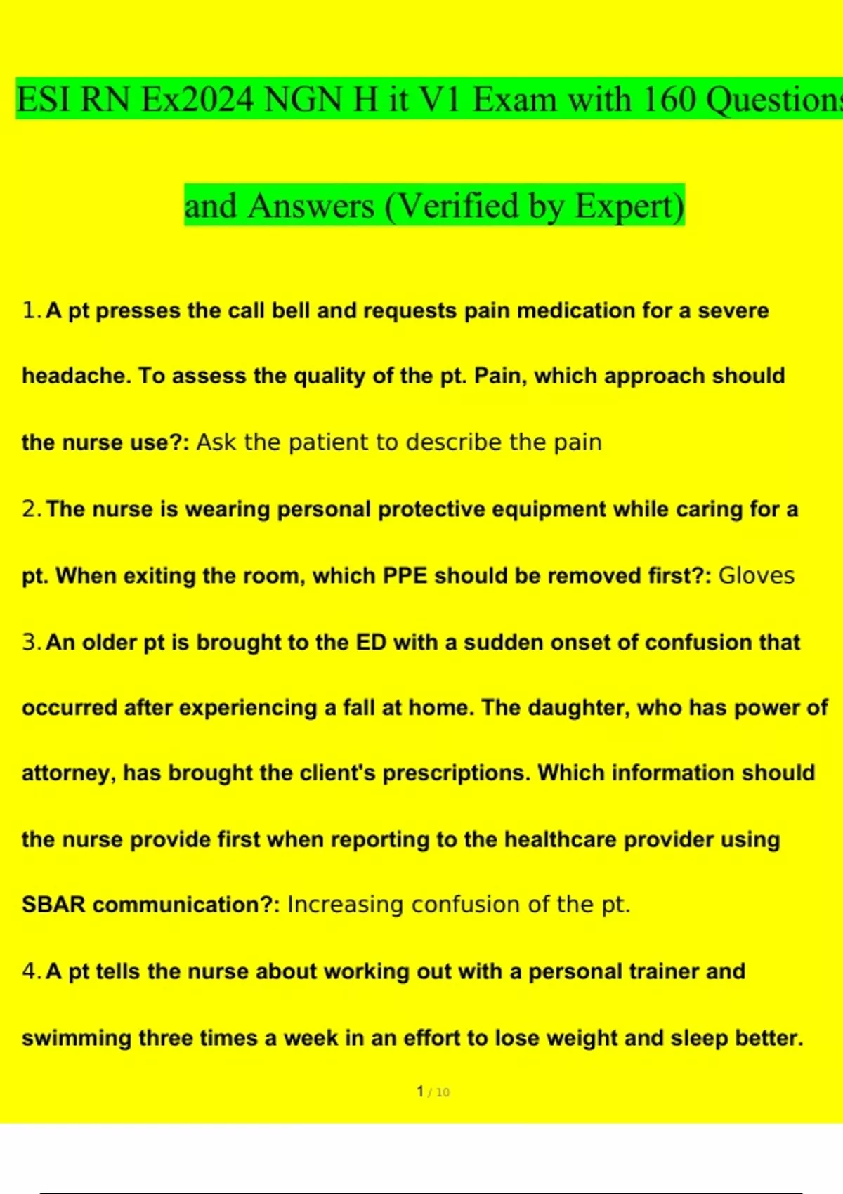 2024 NGN HESI RN Exit V1 Exam with 160 Questions and Answers (Verified by Expert)