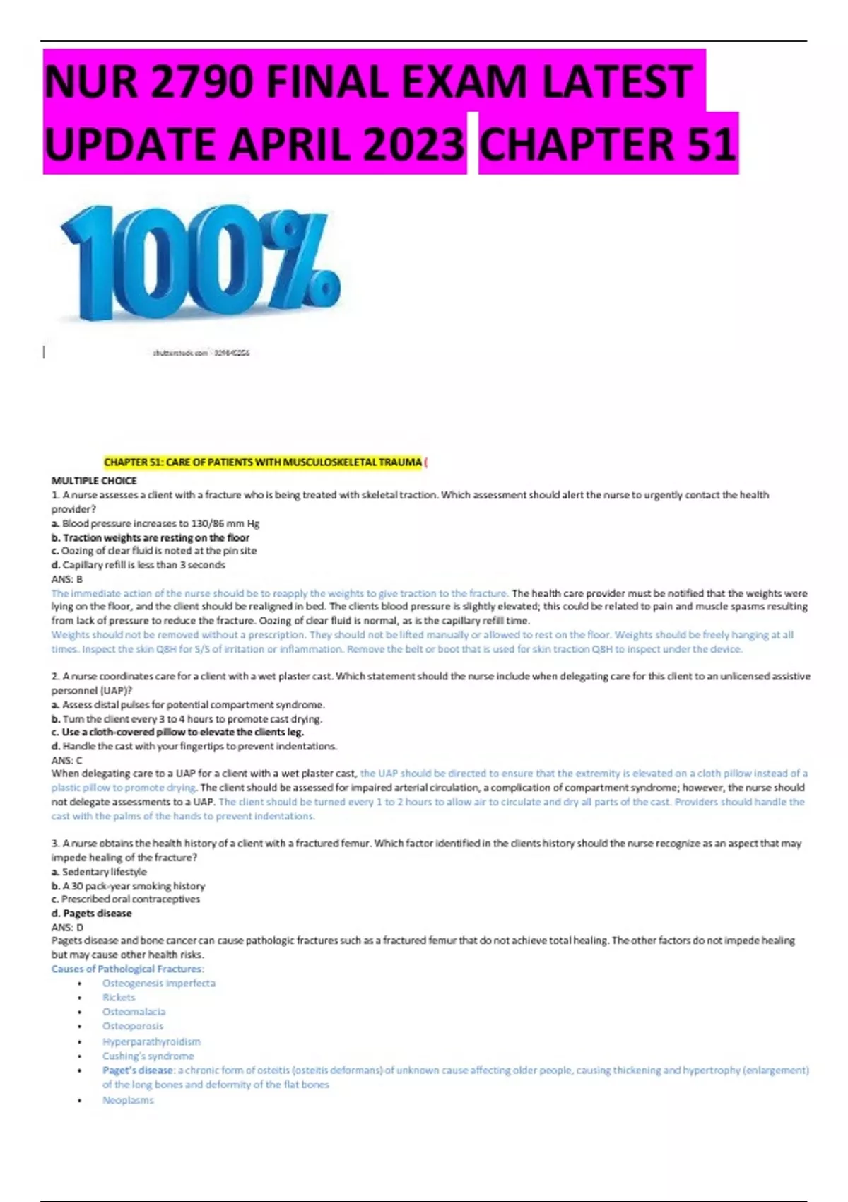 NUR 2790 FINAL EXAM LATEST UPDATE APRIL 2023 CHAPTER 51