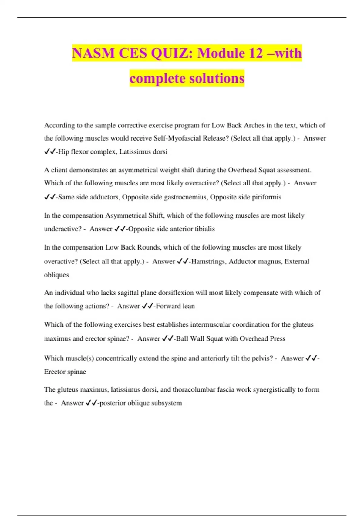 NASM CES QUIZ: Module 12 –with complete solutions