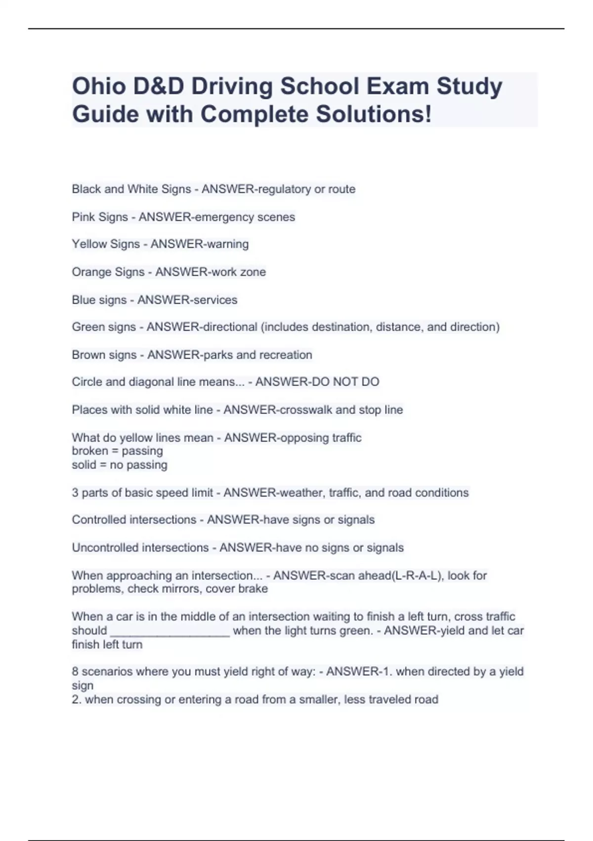 Ohio D&D Driving School Exam Study Guide with Complete Solutions!