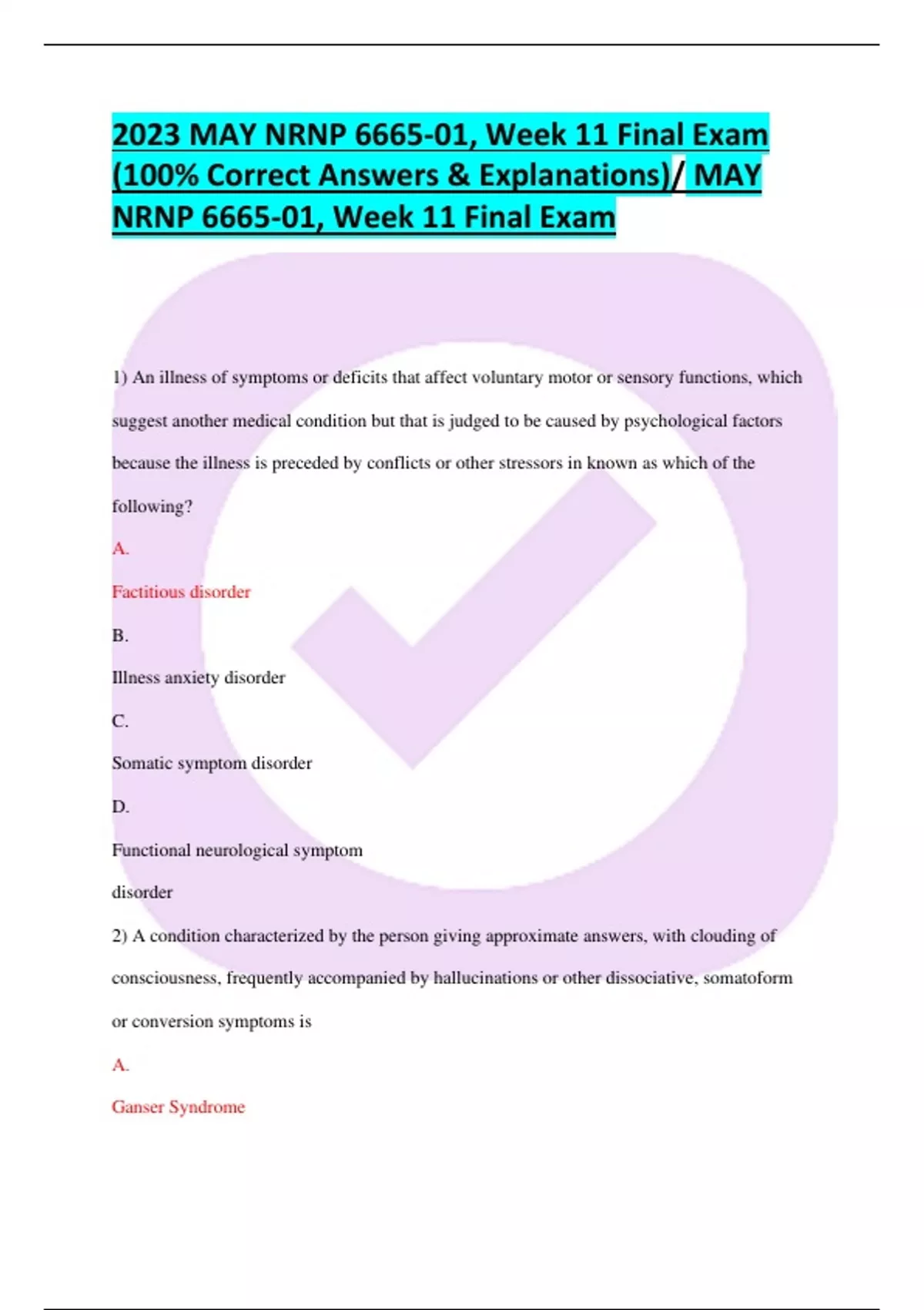 2023 MAY NRNP 6665-01, Week 11 Final Exam (100% Correct Answers & Explanations)/ MAY NRNP 6665-01, Week 11 Final Exam