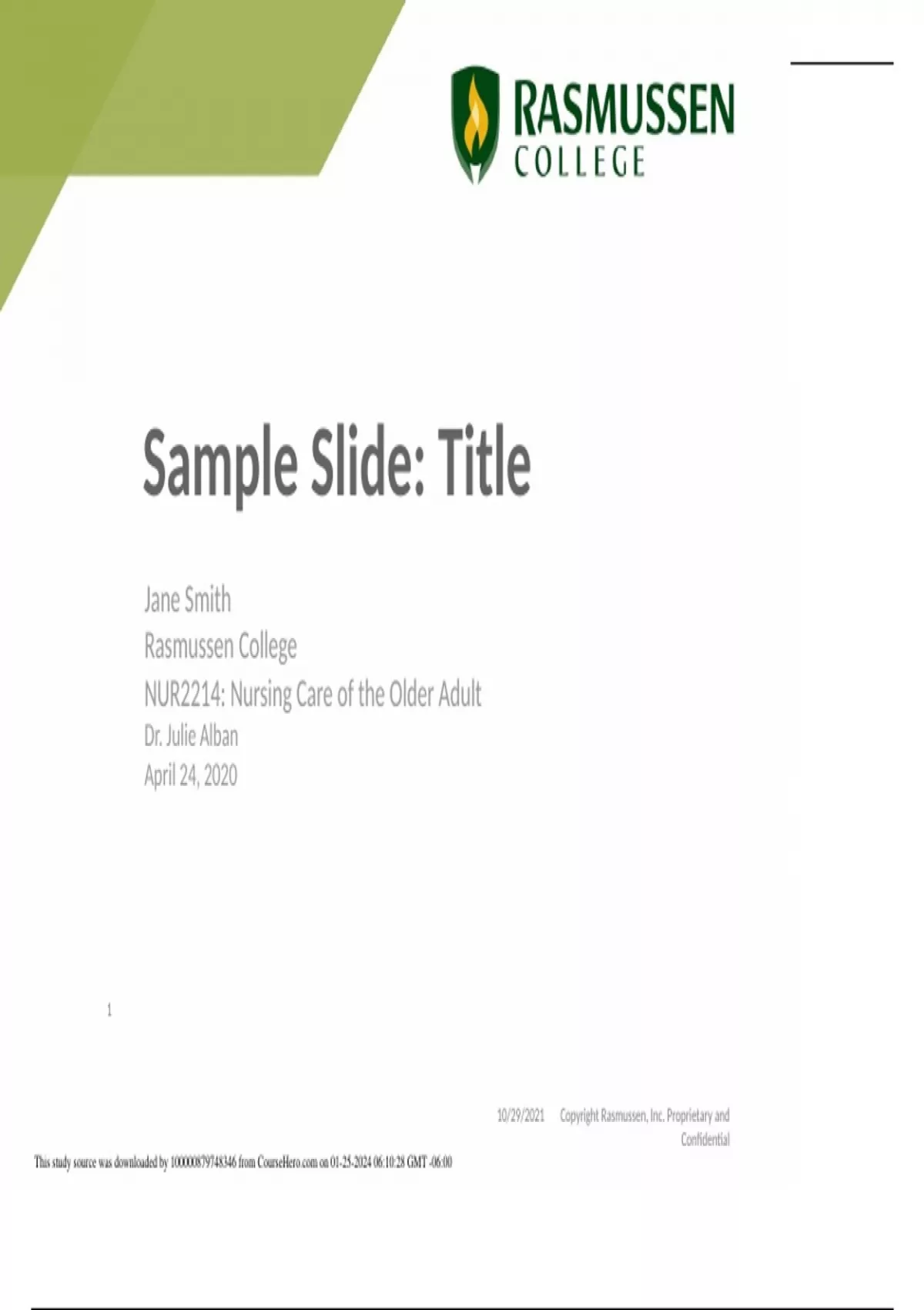 Nursing Care of the Older Adult TEST BANK Review (Latest 2020 / 2021