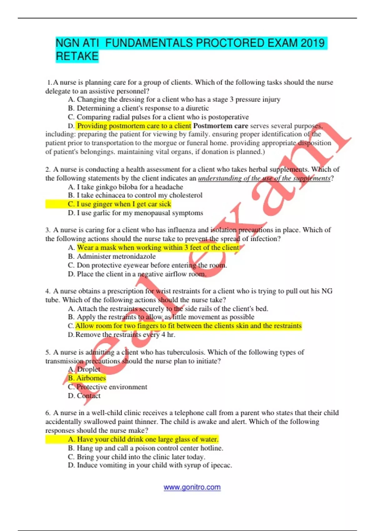NGN ATI FUNDAMENTALS PROCTORED EXAM 2019 RETAKE