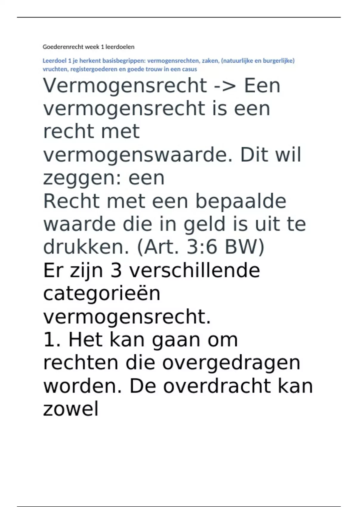 Goederenrecht week 1 leerdoelen