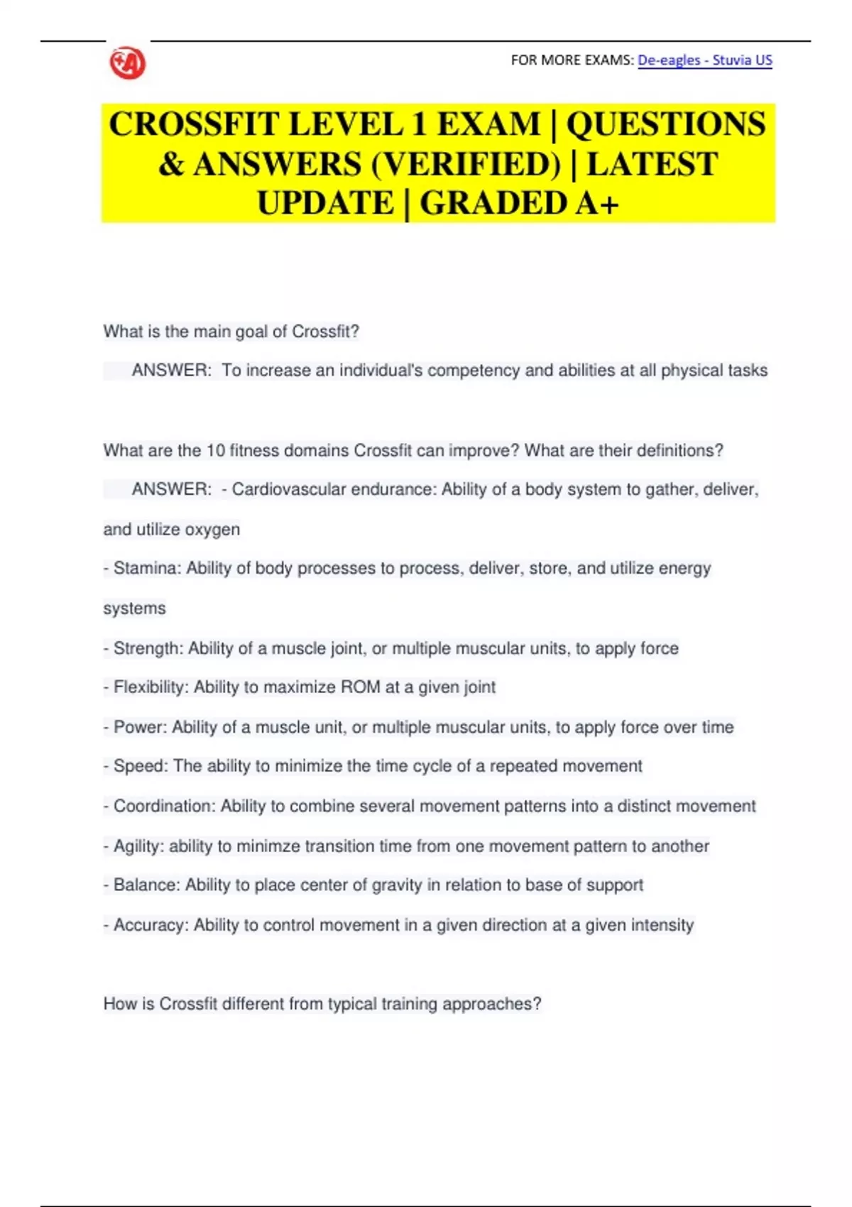 CROSSFIT LEVEL 1 EXAM | QUESTIONS & ANSWERS (VERIFIED) | LATEST UPDATE | GRADED A+