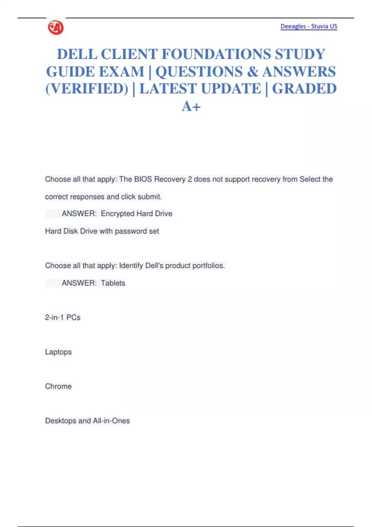 DELL CLIENT FOUNDATIONS STUDY GUIDE EXAM | QUESTIONS & ANSWERS (VERIFIED) | LATEST UPDATE | GRADED A+