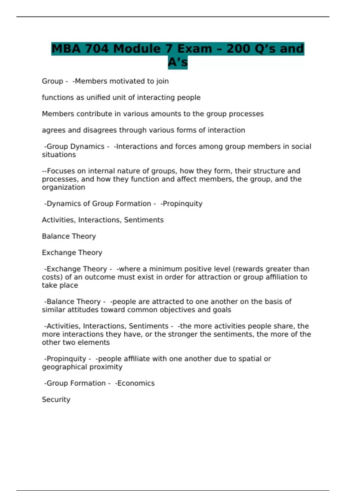 MBA 704 Module 7 Exam – 200 Q’s and A’s