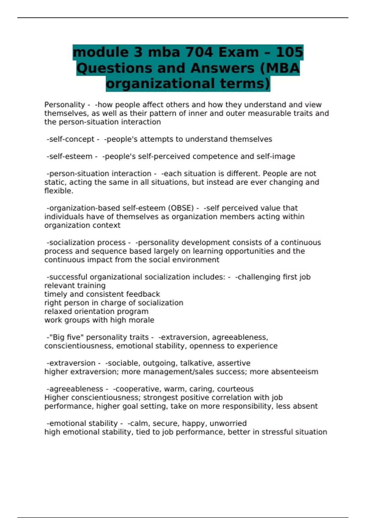 module 3 mba 704 Exam – 105 Questions and Answers (MBA organizational terms)