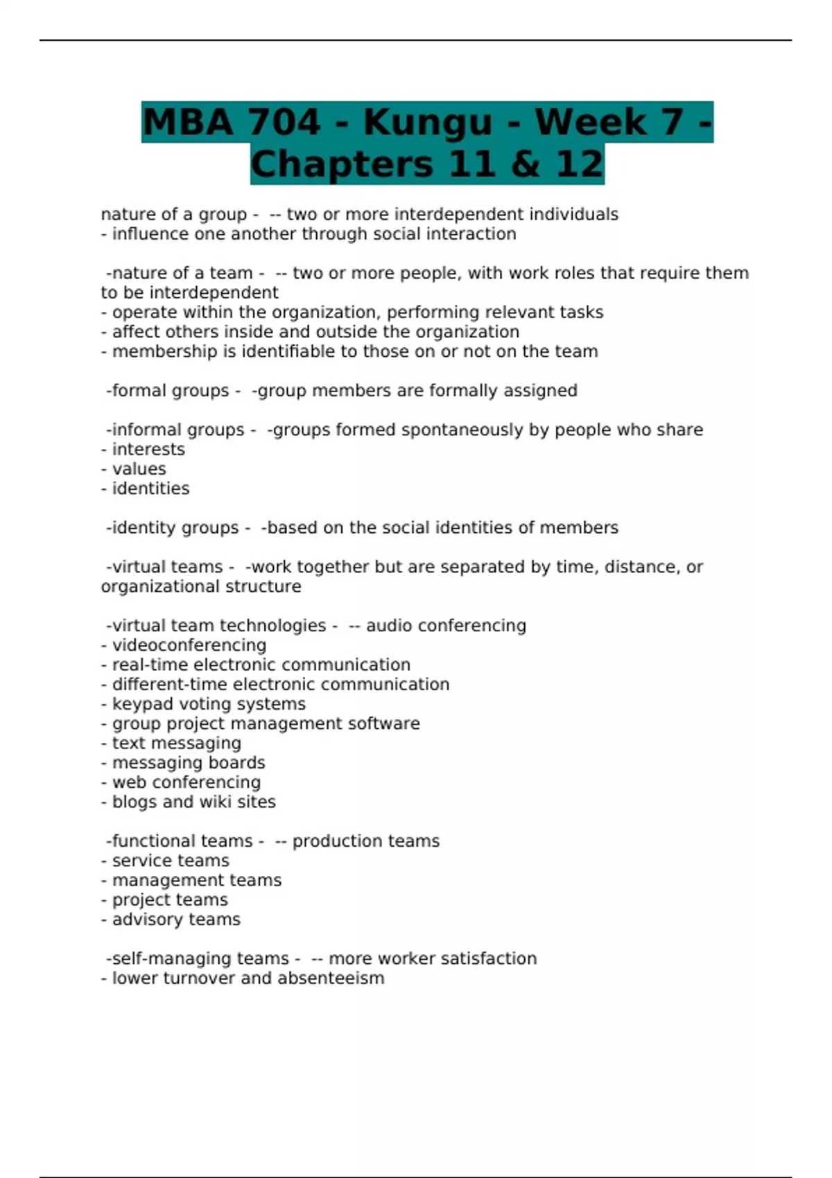 MBA 704 - Kungu - Week 7 - Chapters 11 & 12