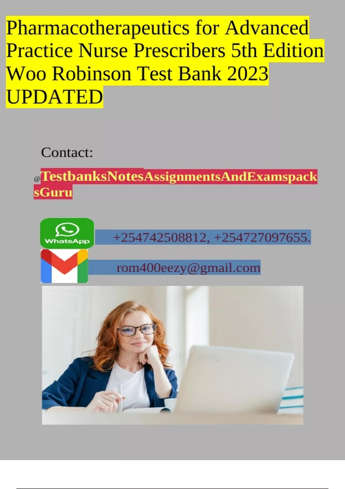 Pharmacotherapeutics for Advanced Practice Nurse Prescribers 5th Edition Woo Robinson Test Bank 2023 UPDATEDPharmacotherapeutics for Advanced Practice Nurse Prescribers 5th Edition Woo Robinson Test Bank 2023 UPDATEDPharmacotherapeutics for Advanced Practice Nurse Prescribers 5th Edition Woo Robinson Test Bank 2023 UPDATEDPharmacotherapeutics for Advanced Practice Nurse Prescribers 5th Edition Woo Robinson Test Bank 2023 UPDATEDPharmacotherapeutics for Advanced Practice Nurse Prescribers 5th Edition Woo Robinson Test Bank 2023 UPDATEDPharmacotherapeutics for Advanced Practice Nurse Prescribers 5th Edition Woo Robinson Test Bank 2023 UPDATED