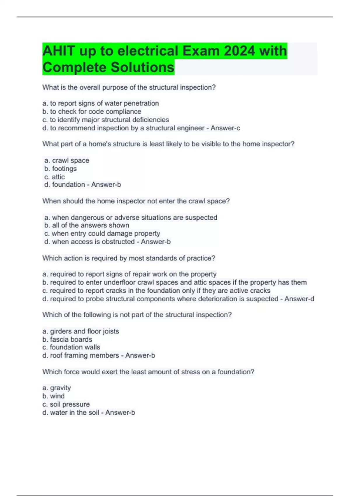 AHIT up to electrical Exam 2024 with Complete Solutions