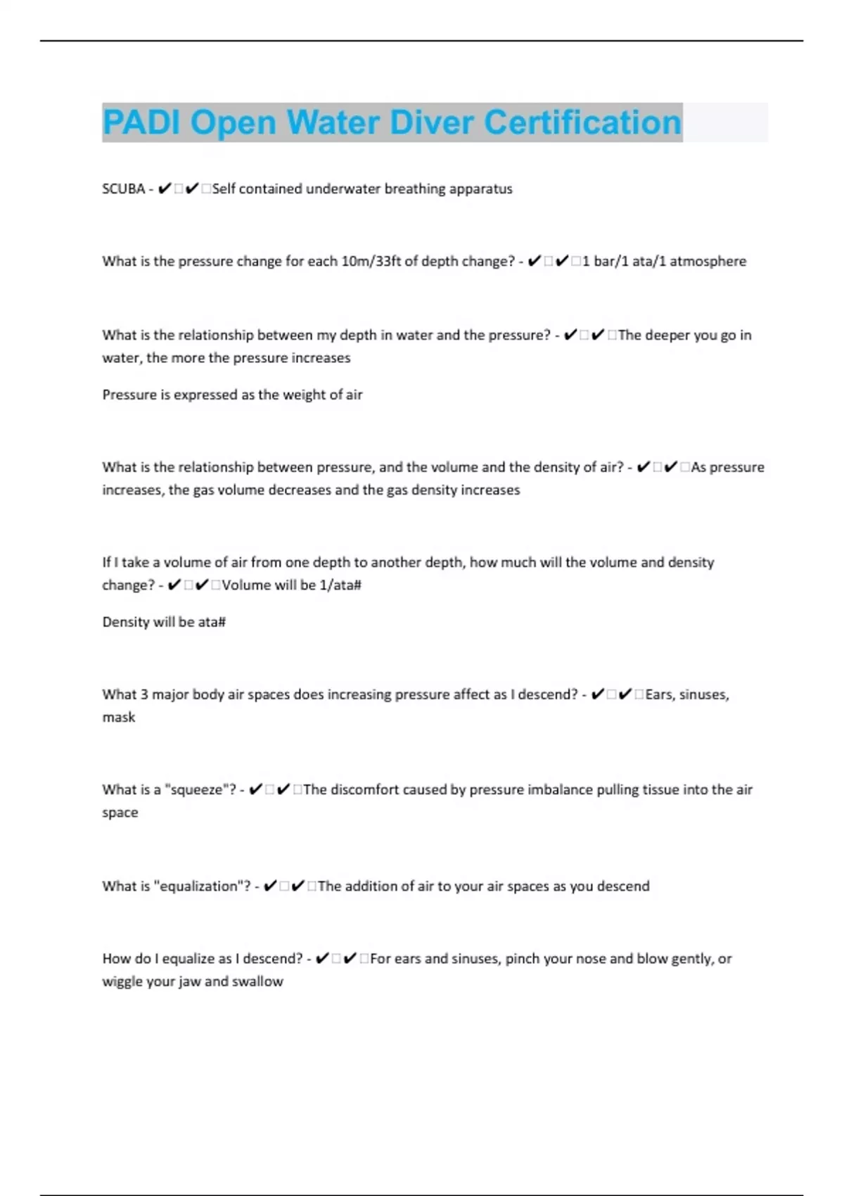 PADI Open Water Diver Certification 167 Questions with 100% Correct Answers | Verified | Updated 2024