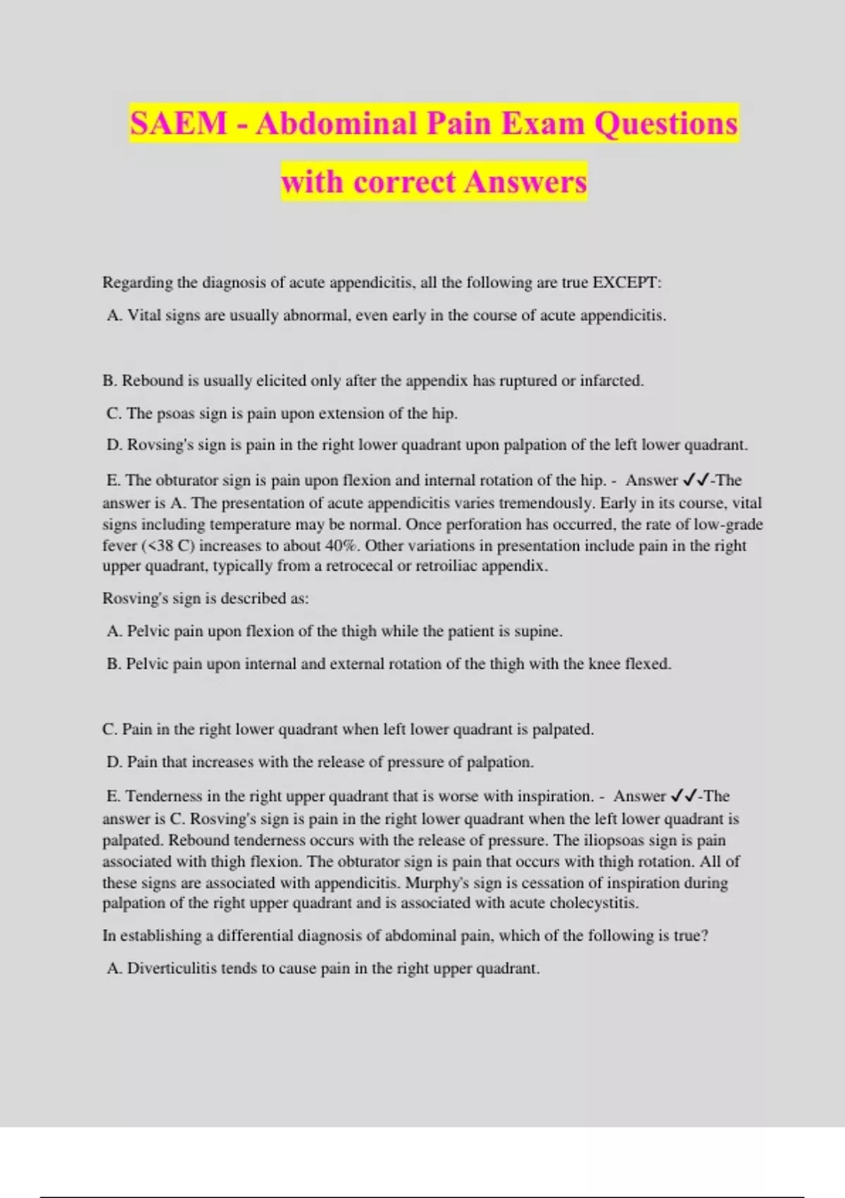 SAEM - Abdominal Pain Exam Questions with correct Answers