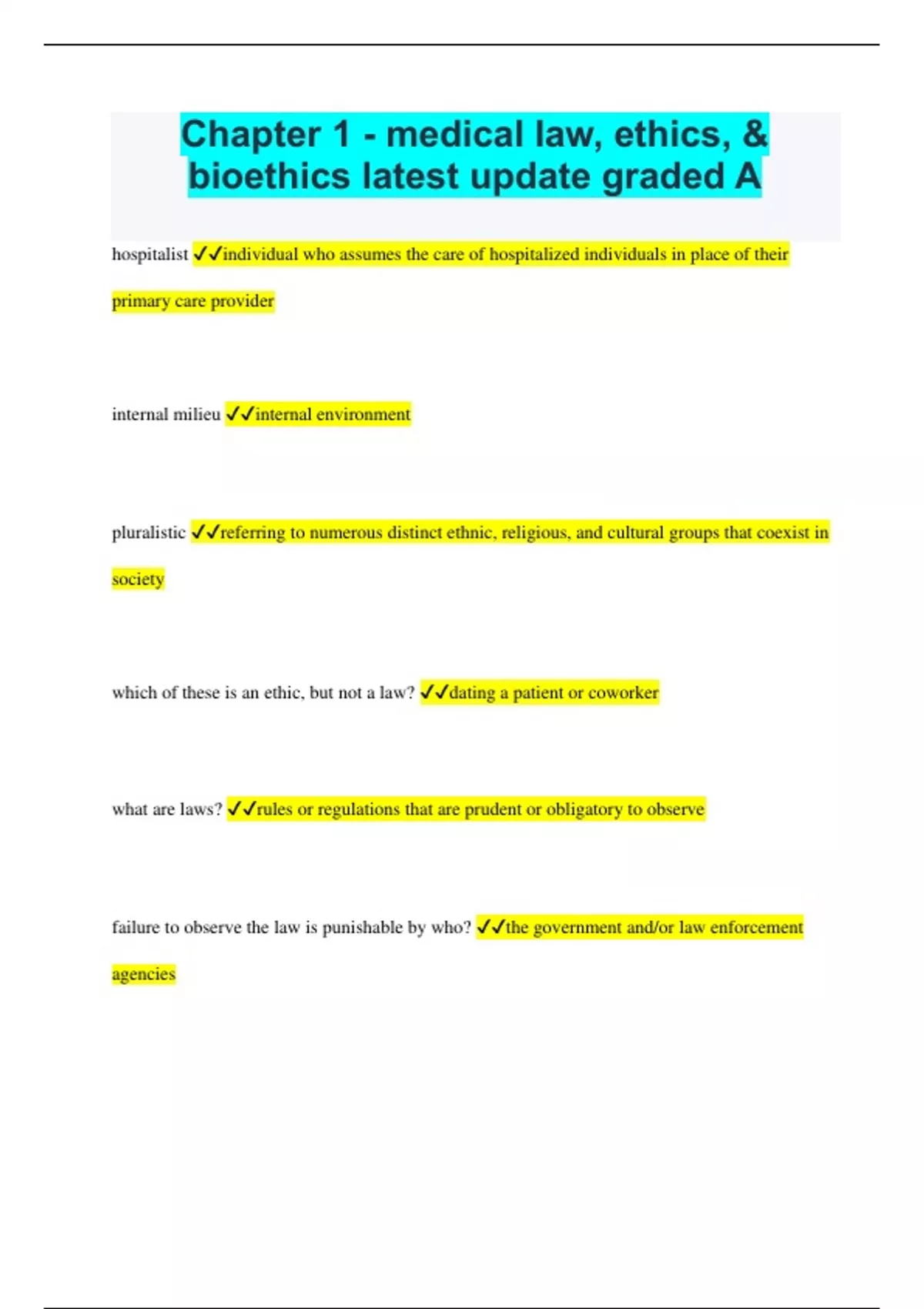 Chapter 1 - medical law, ethics, & bioethics latest update graded A