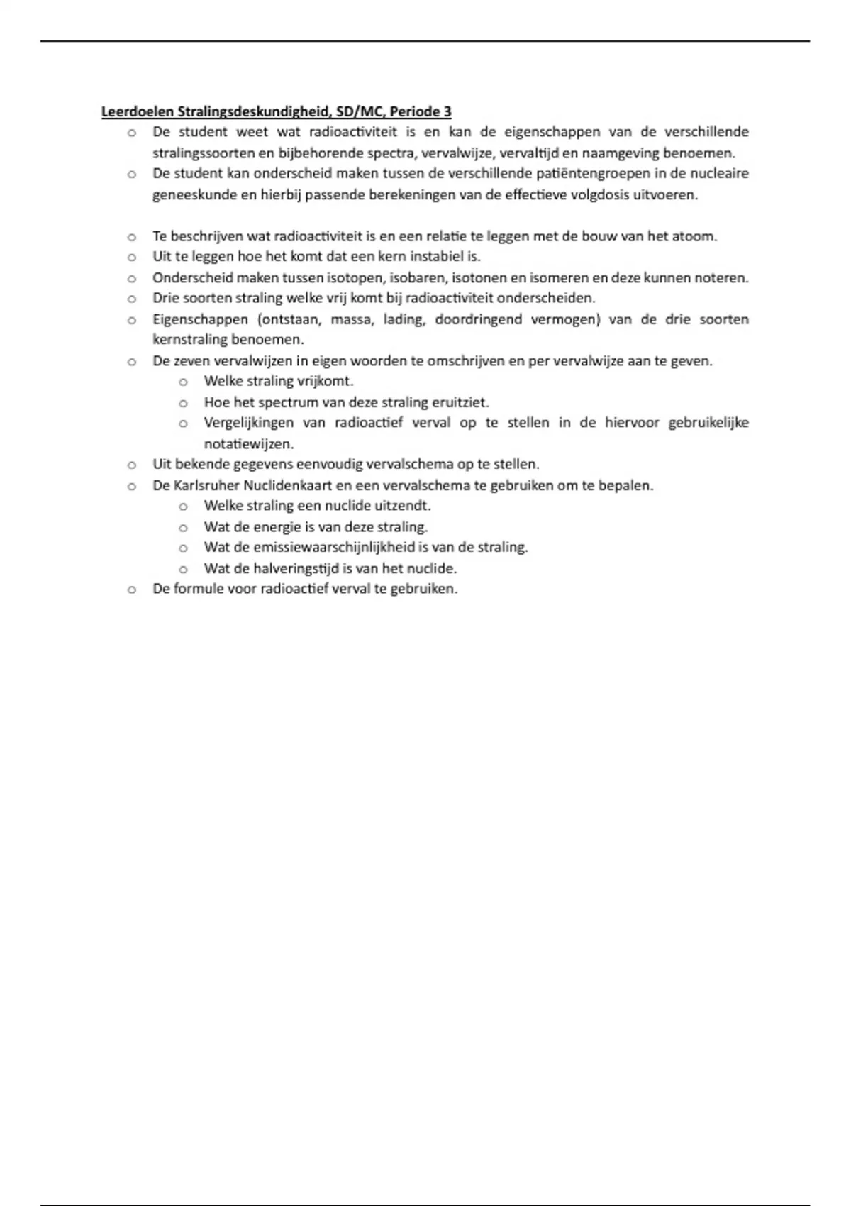 Leerdoelen Stralingsdeskundigheid, SD/MC, Periode 3