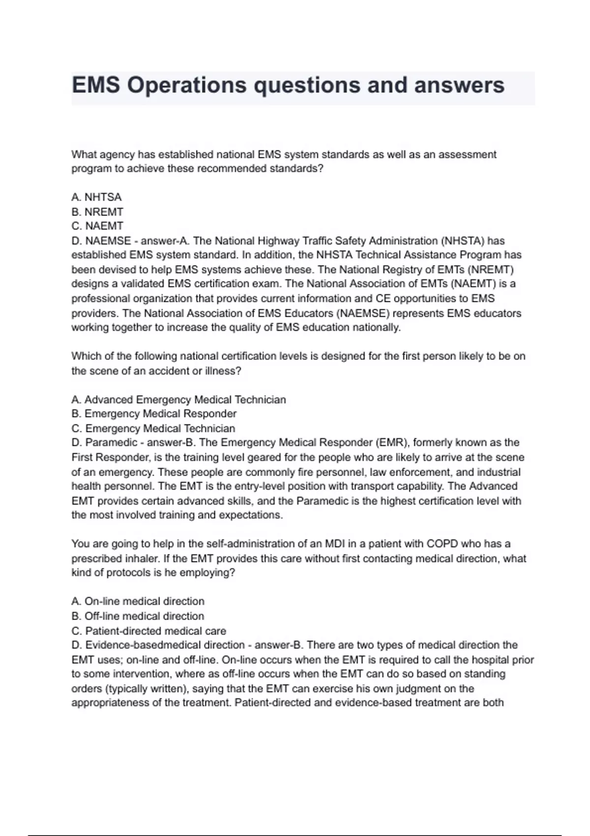 - EMS Operations questios and ansers