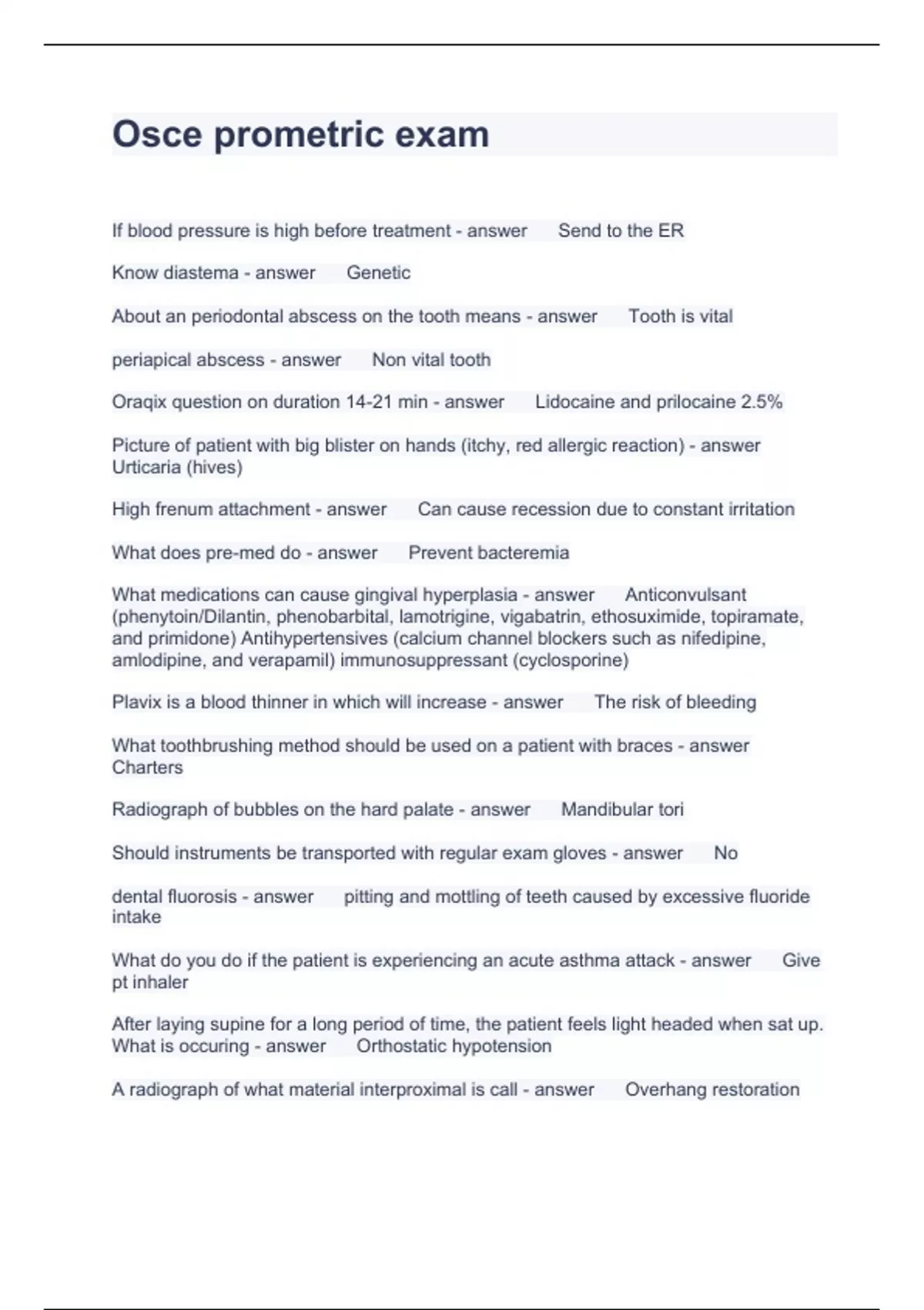 Exam of 7 pages for the course OSCE at OSCE (Osce prometric exam)