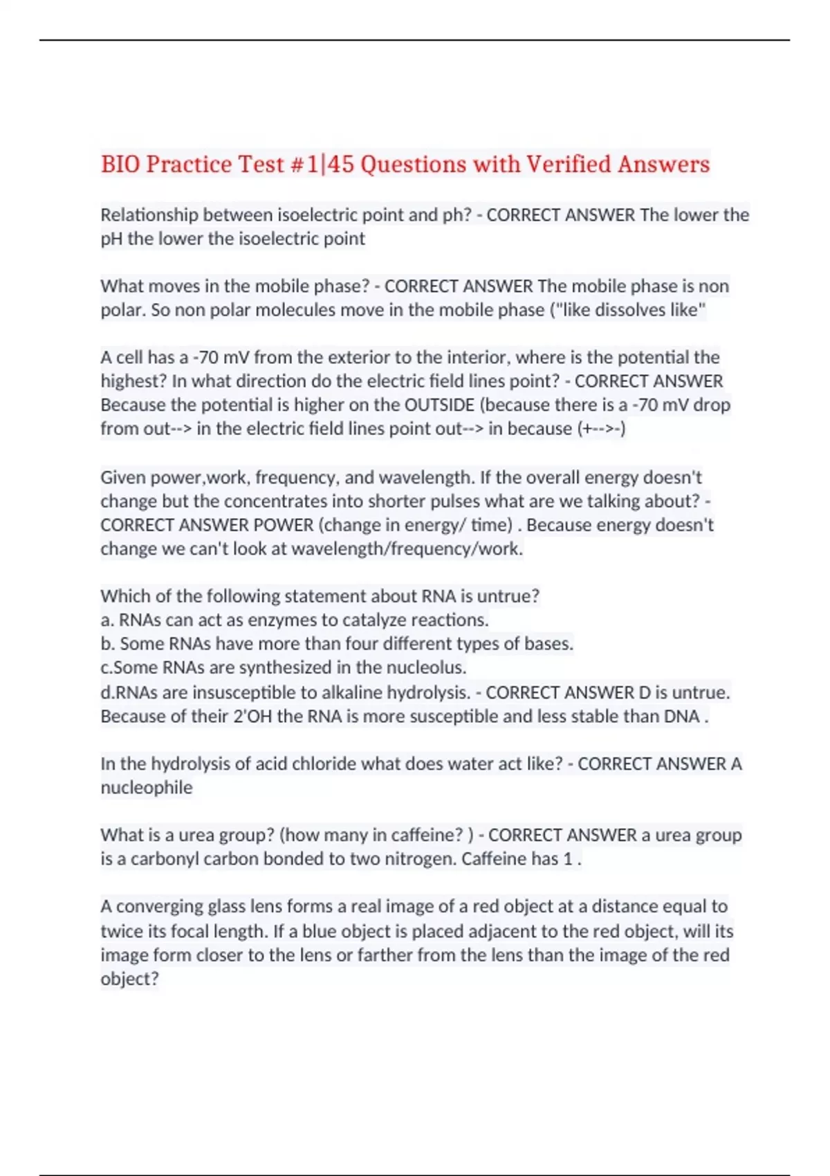 BIO Practice Test #1|45 Questions with Verified Answers,100% CORRECT