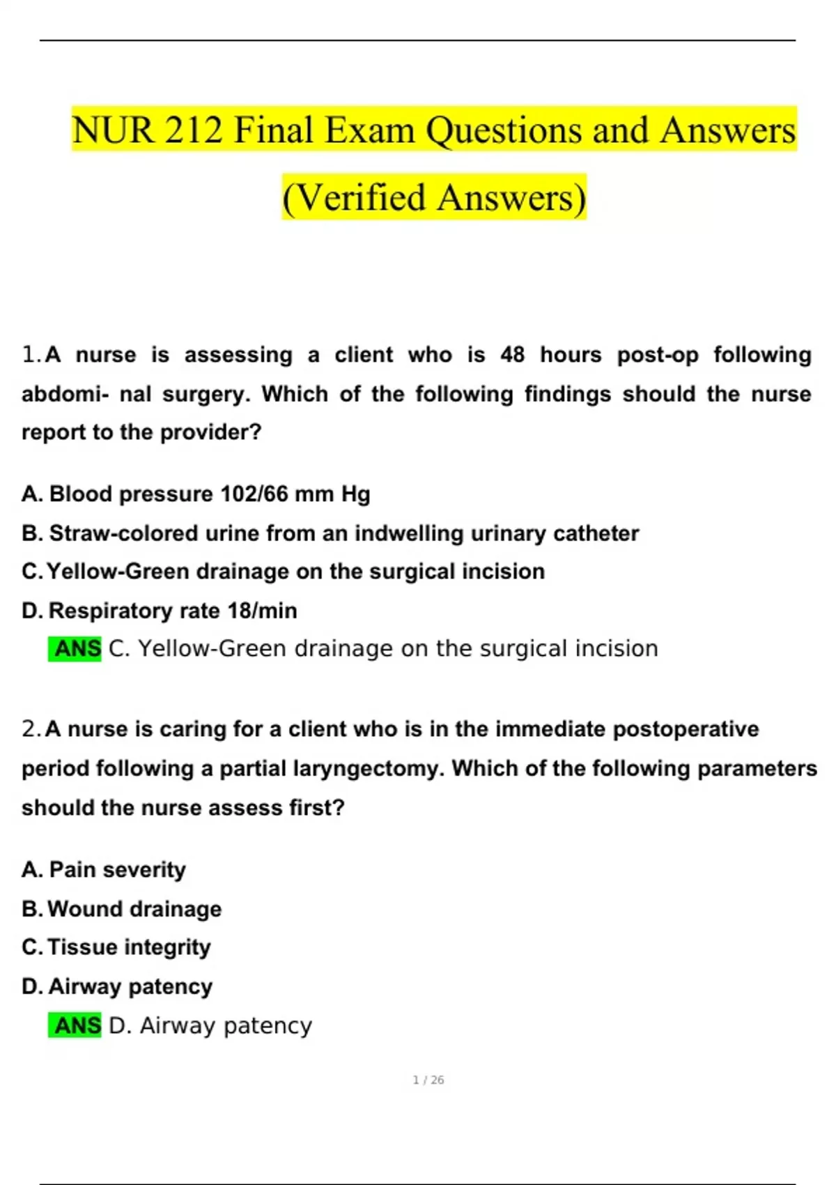 NUR 212 Final Exam Questions and Answers 2024 / 2025 | 100% Verified Answers